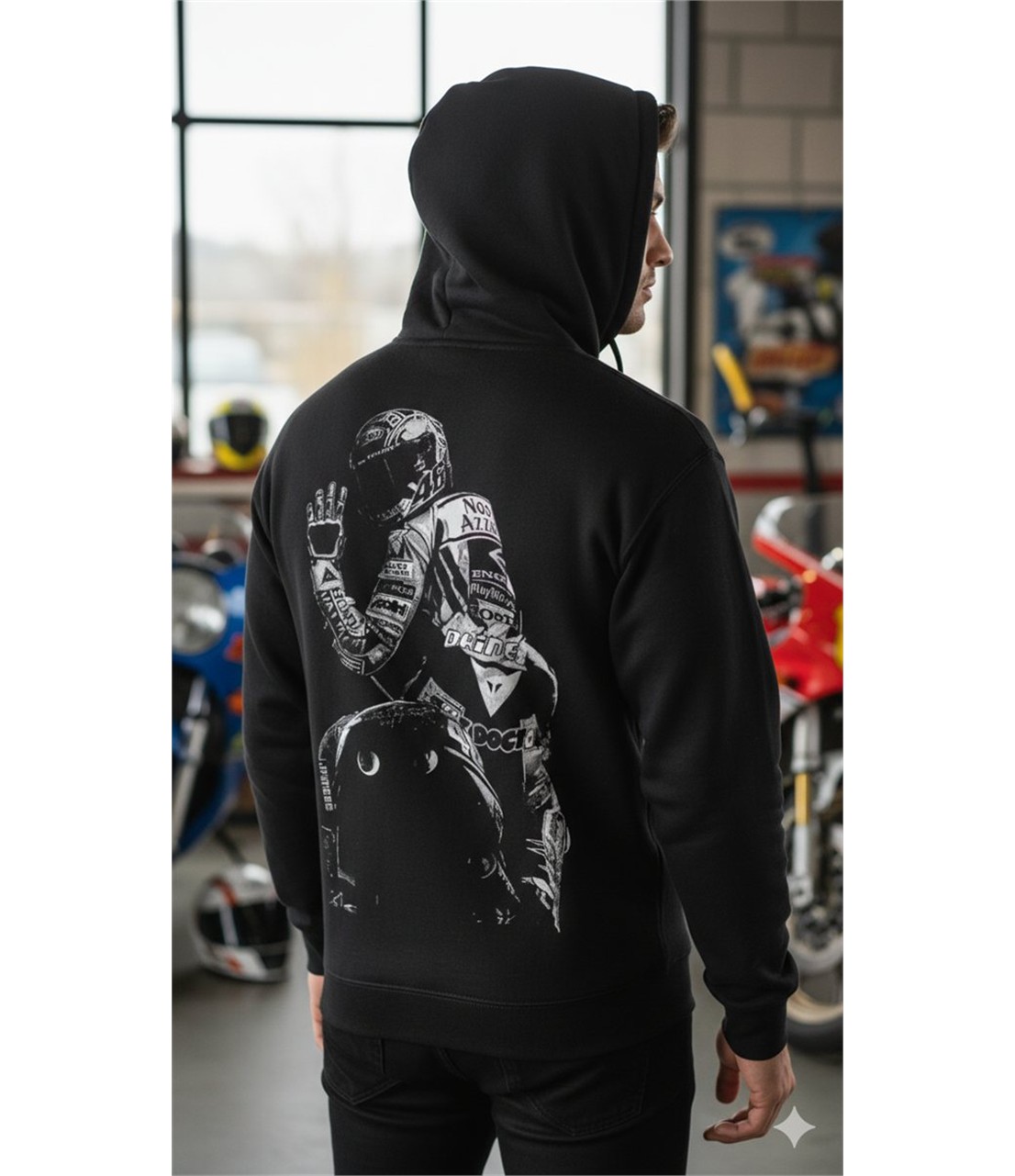 Minimalizm w najlepszym wydaniu – tak można opisać bluzę motocyklową męską z kapturem, której czarno-biały nadruk z motocyklistą robi wrażenie od pierwszego spojrzenia. Stylowy, ale nieprzesadzony wzór to połączenie surowości z elegancją prostych linii. Taka motocyklowa bluza męska z kapturem przyciąga uwagę nie krzykliwymi kolorami, a właśnie subtelnym kontrastem i klimatem wolności. Grafika z motocyklistą oddaje ducha drogi – pełnego pasji, adrenaliny i niezależności. To idealna propozycja dla tych, którzy lubią wyrażać siebie bez zbędnych słów. Bluzy męskie motoryzacyjne z kapturem w takim wydaniu są nie tylko ubraniem, ale też sposobem na pokazanie swojej pasji.