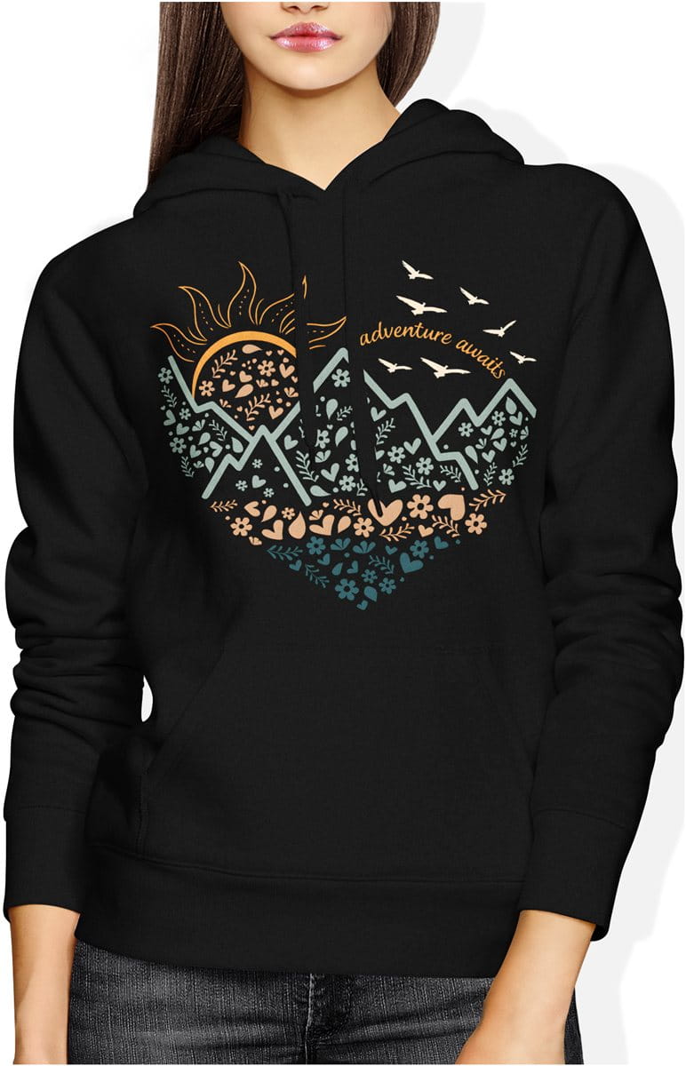 Adventure awaits słońce podróże przygoda Damska bluza z kapturem