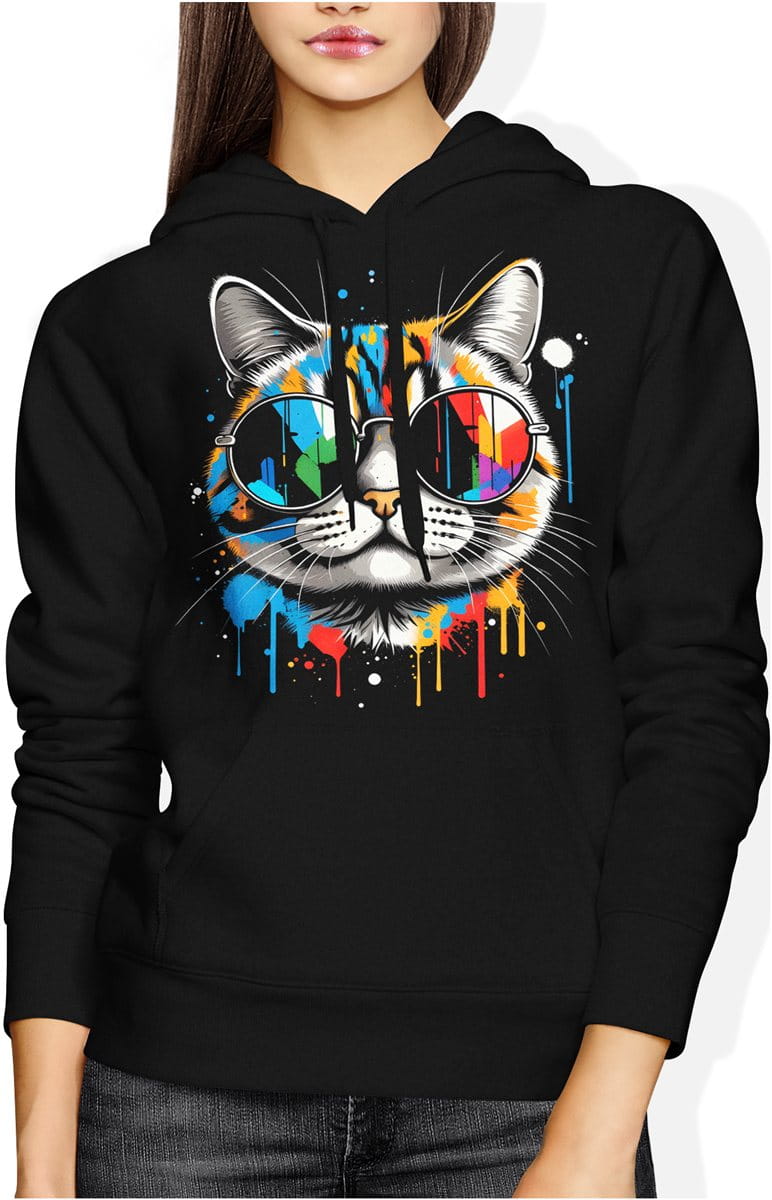 Kot w okularach art kolorowy street styl nowoczesna grafika zwierzęca Damska bluza z kapturem