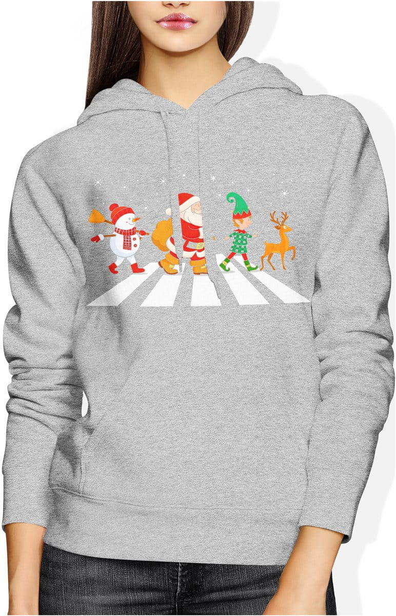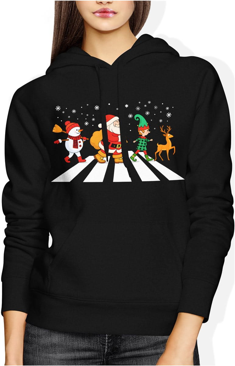 Mikołaj na przejściu – świąteczna parodia z elfem, reniferem i bałwanem Damska bluza z kapturem