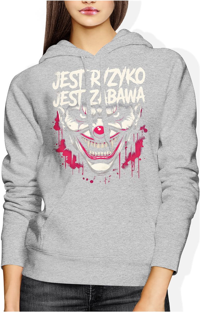 Mroczny klaun ryzyko zabawa horror styl graficzny Damska bluza z kapturem
