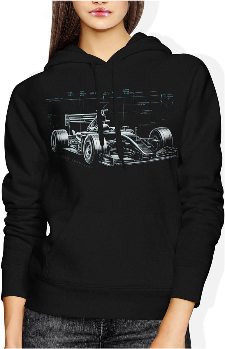 Projekt bolidu F1 techniczny rysunek auta wyścigowego Damska bluza z kapturem