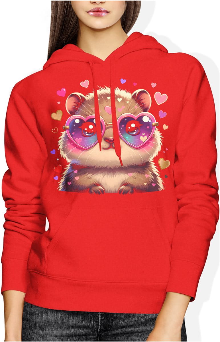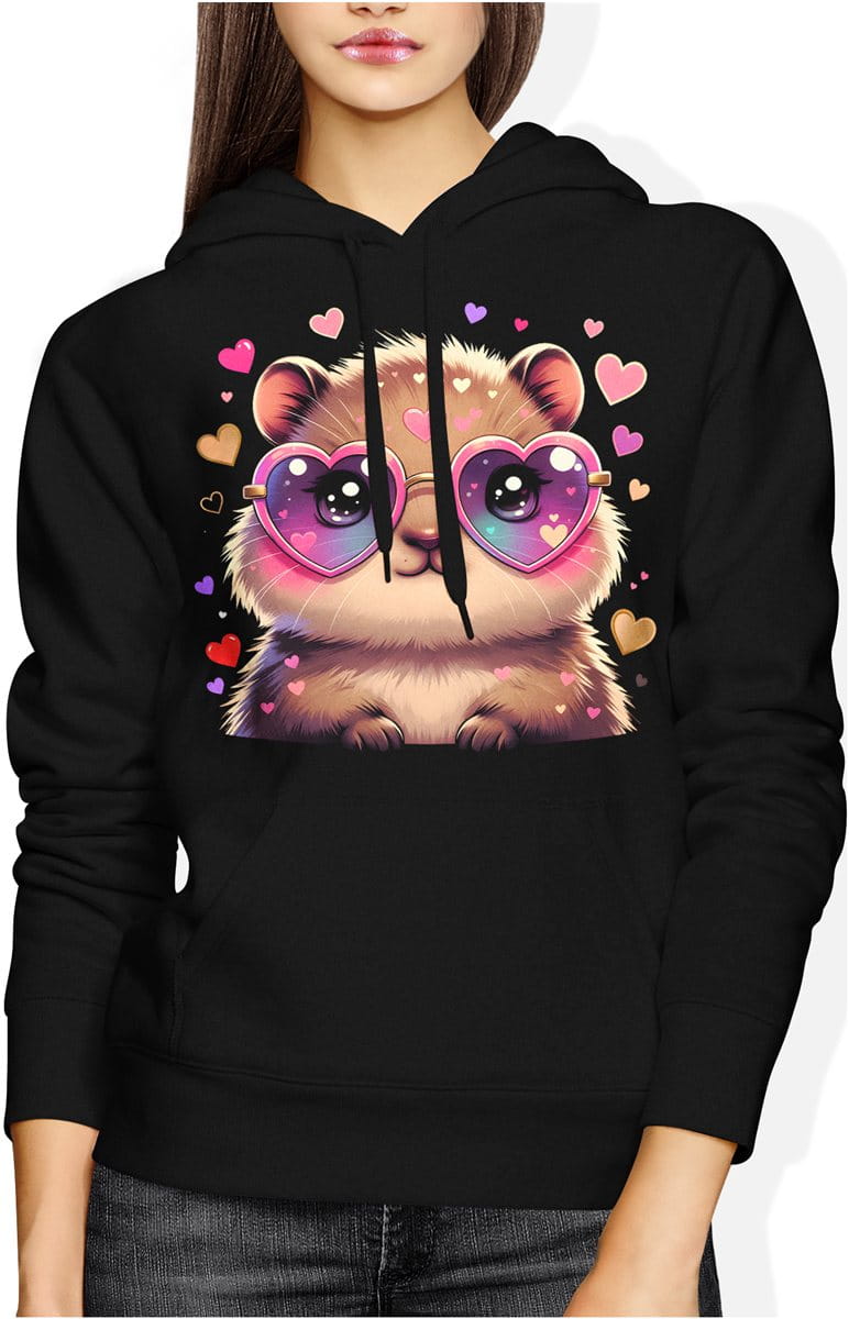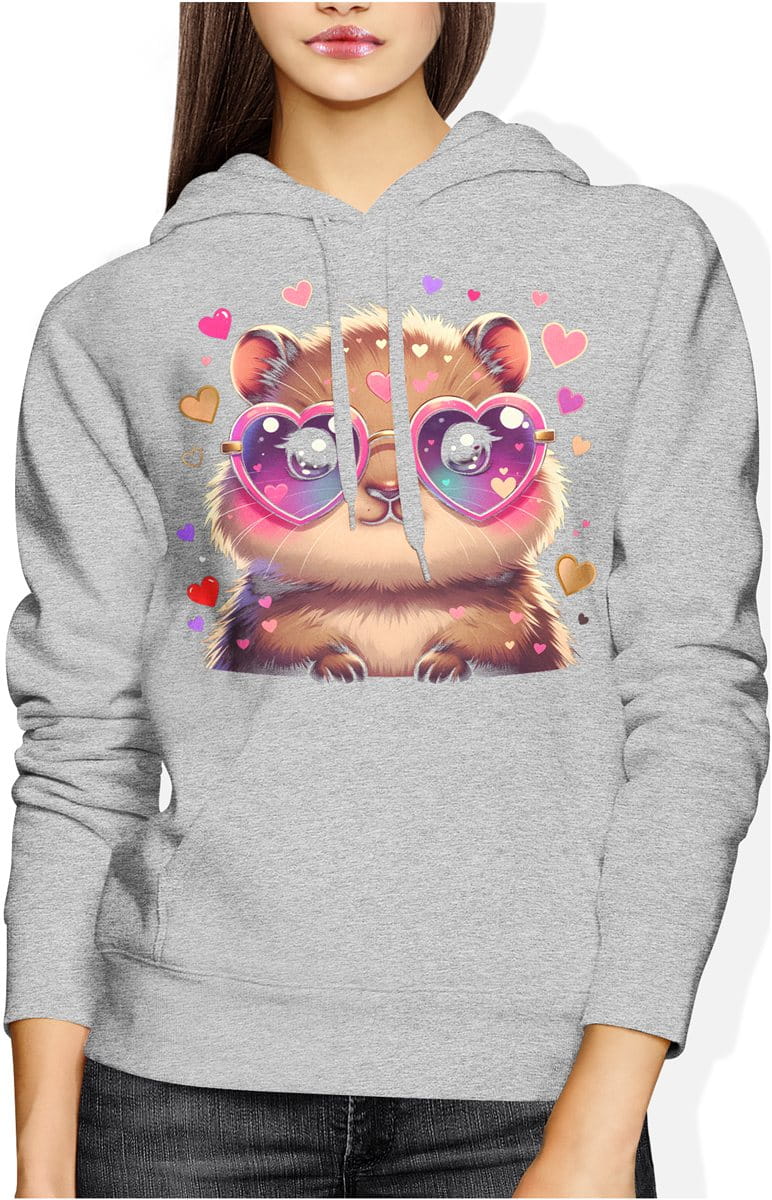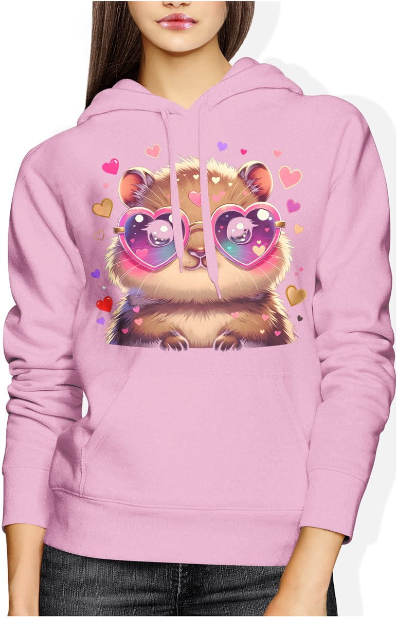 Słodka kabibara serca miłość kawaii uroczy styl Damska bluza z kapturem