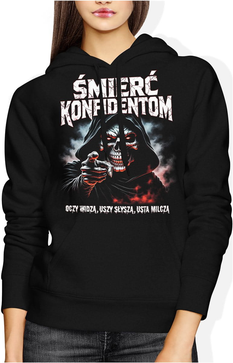Mroczna śmierć konfidentom lojalność ulica zasady honor anty 60 jebac Damska bluza z kapturem
