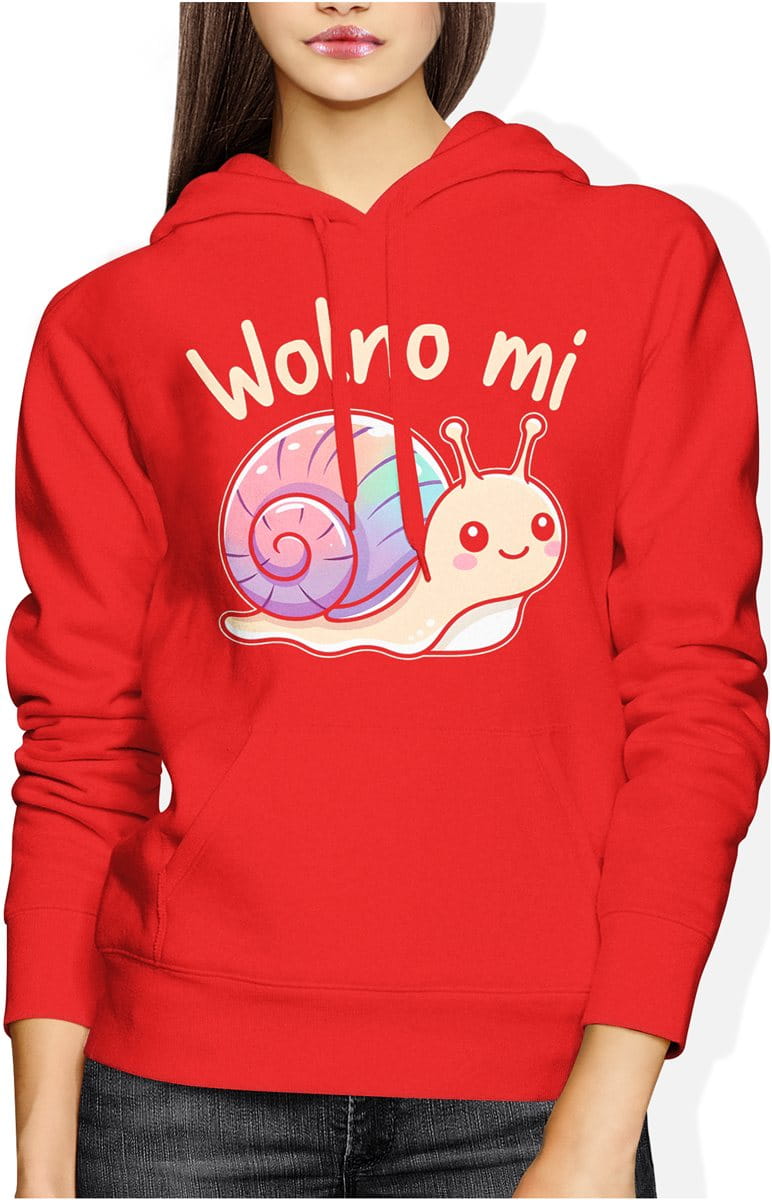 Wolno mi ślimak slow life dystans spokój humor uroczy Damska bluza z kapturem