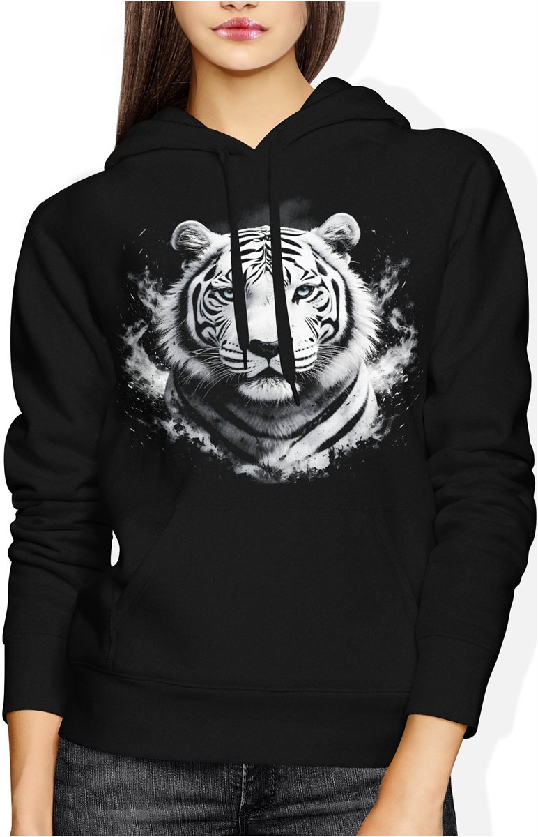 Biały tygrys potężny drapieżnik oczy lodu dzika natura siła elegancja zwierzę Damska bluza z kapturem