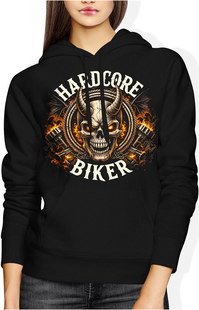 Hardcore biker motocykl czaszka płomienie stal silnik jazda moto styl Damska bluza z kapturem