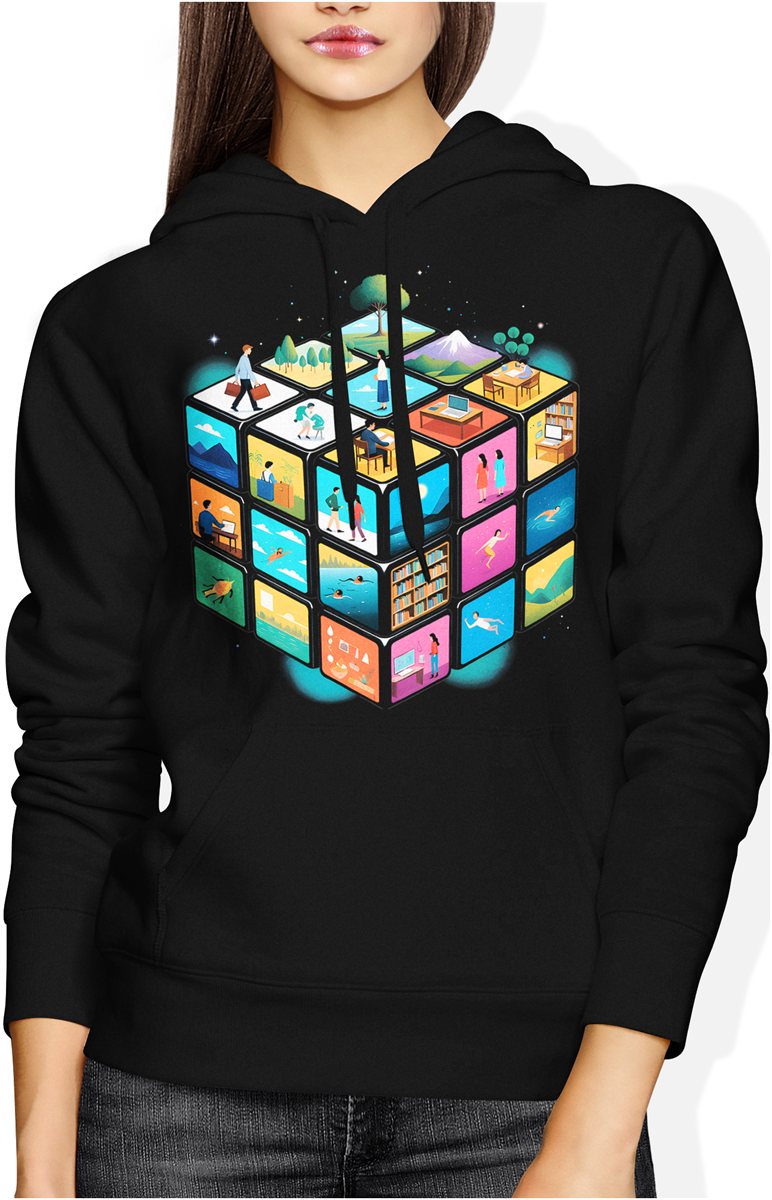 Kostka światów życie praca podróże natura kreatywność styl minimalistyczny nowoczesny design Damska bluza z kapturem