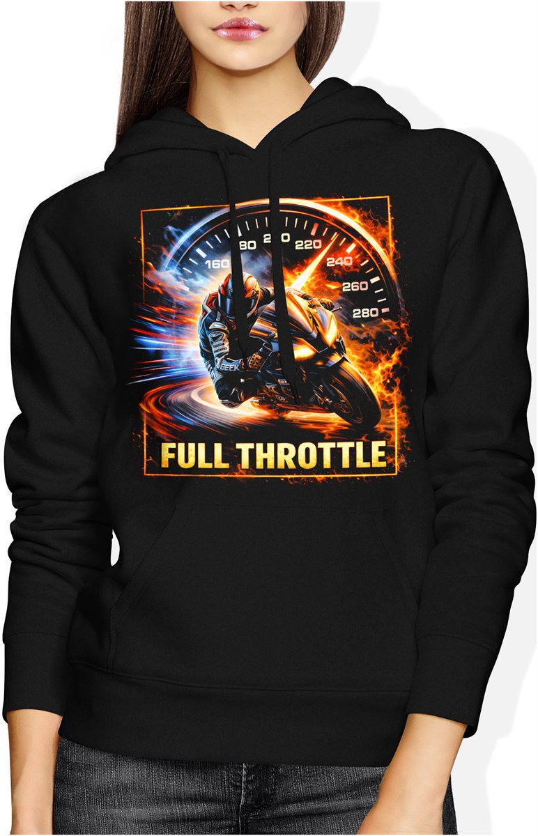 Motocykl sportowy prędkość licznik racing szybka jazda tor wyścigowy rider Damska bluza z kapturem