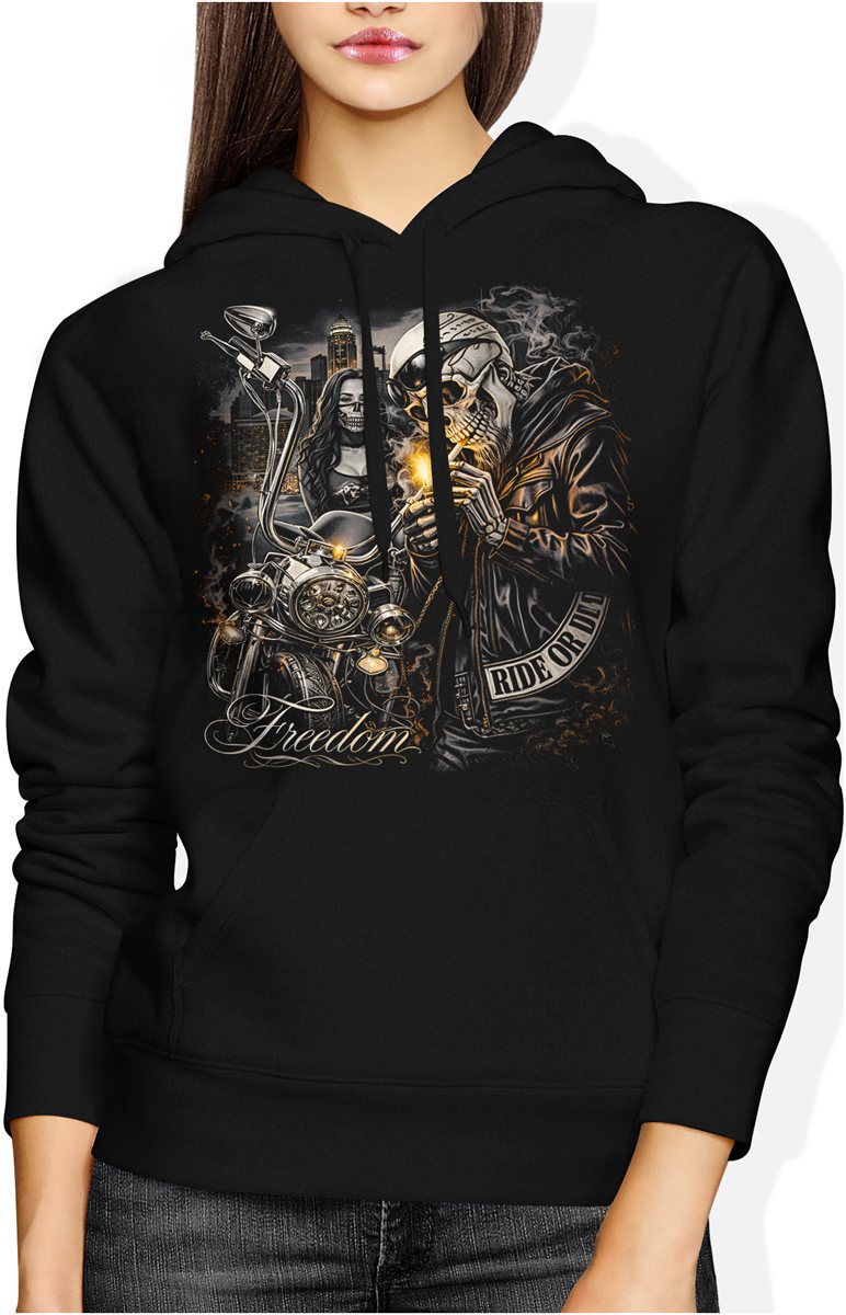 Motocykl szkielet biker ride or die wolność droga styl motoryzacyjny chopper klimat noc Damska bluza z kapturem