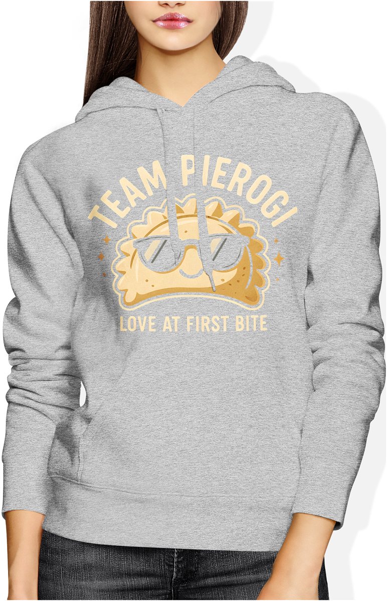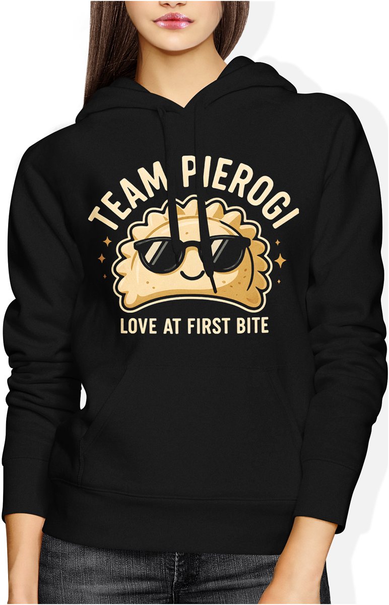 Pierogi jedzenie kuchnia polska miłość od pierwszego kęsa humor foodie Damska bluza z kapturem