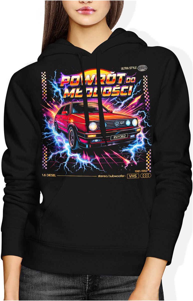 Samochód retro neonowy klasyk powrót do młodości lata 80 styl Damska bluza z kapturem