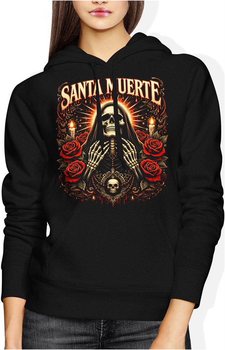 Santa Muerte czaszka róże świece mistyczny klimat religijny symbol śmierci tattoo dark styl Damska bluza z kapturem