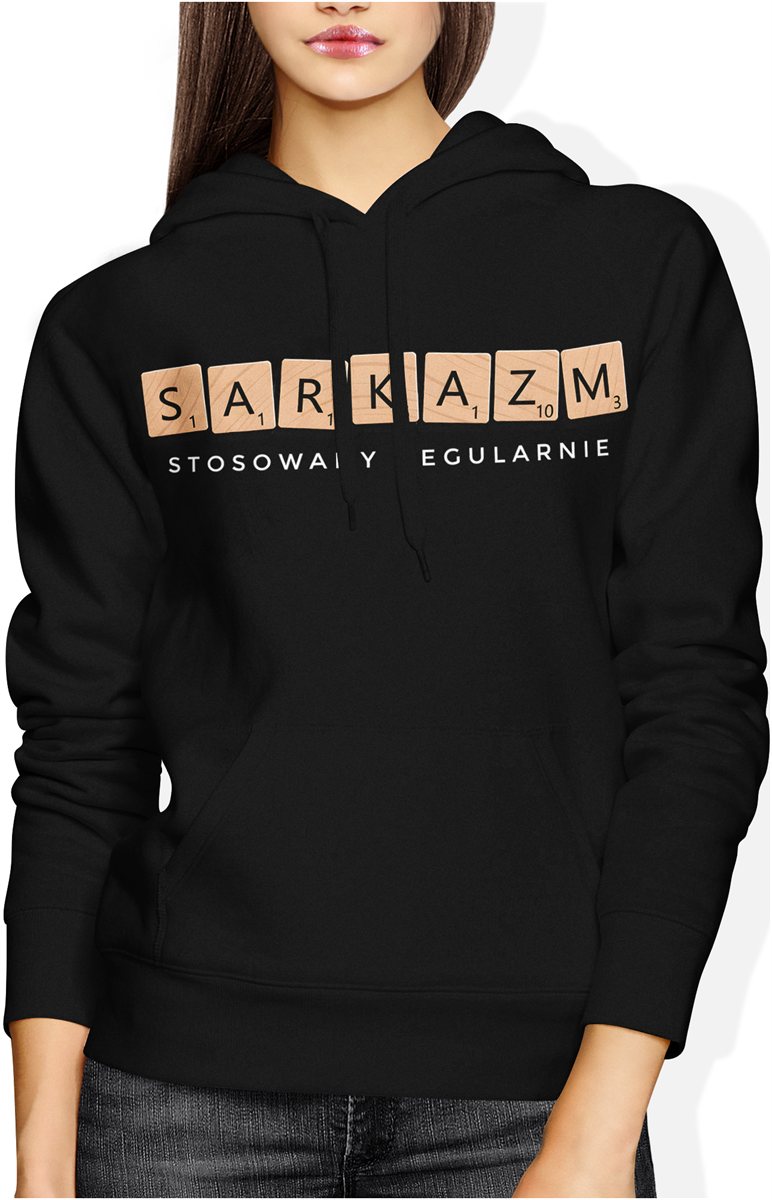 Sarkazm stosowany regularnie scrabble litery gra słowna humor ironia tekst minimalizm Damska bluza z kapturem