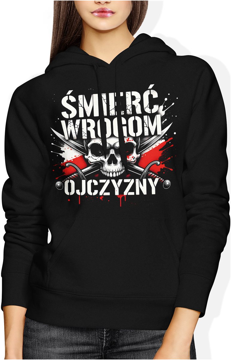 Śmierć Wrogom Ojczyzny czaszka miecze patriotyczny symbol walka honor siła czerwono biała Damska bluza z kapturem