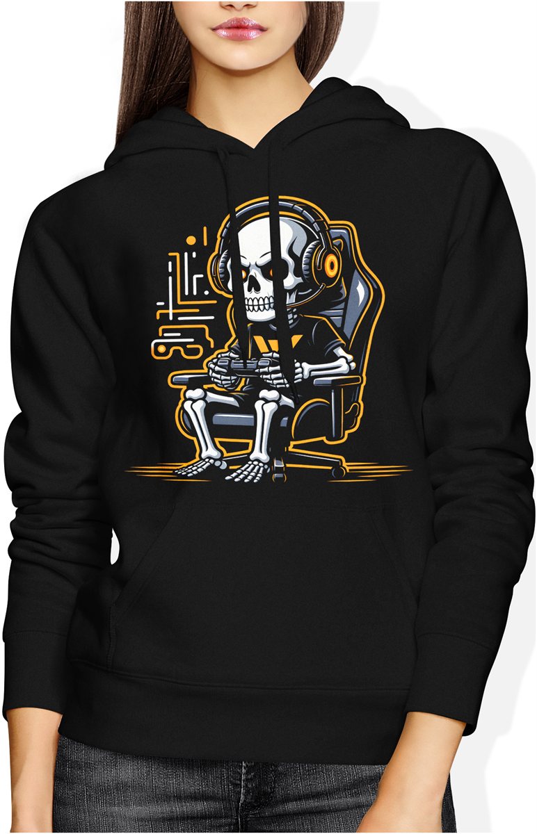 Szkielet gracz gaming headset pad komputer styl gracza e-sport rozrywka nocna pixel vibe Damska bluza z kapturem
