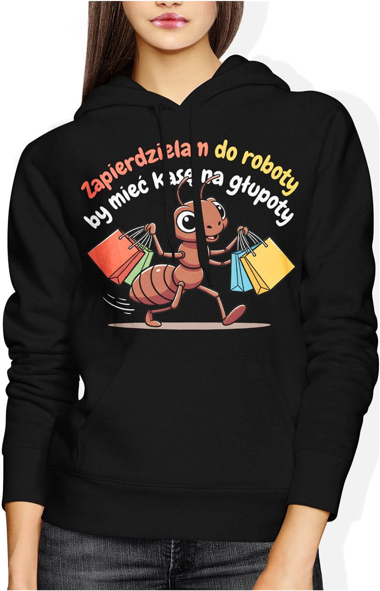 Zapierdzielam by mieć kasę na głupoty dystans humor praca życie luz Damska bluza z kapturem