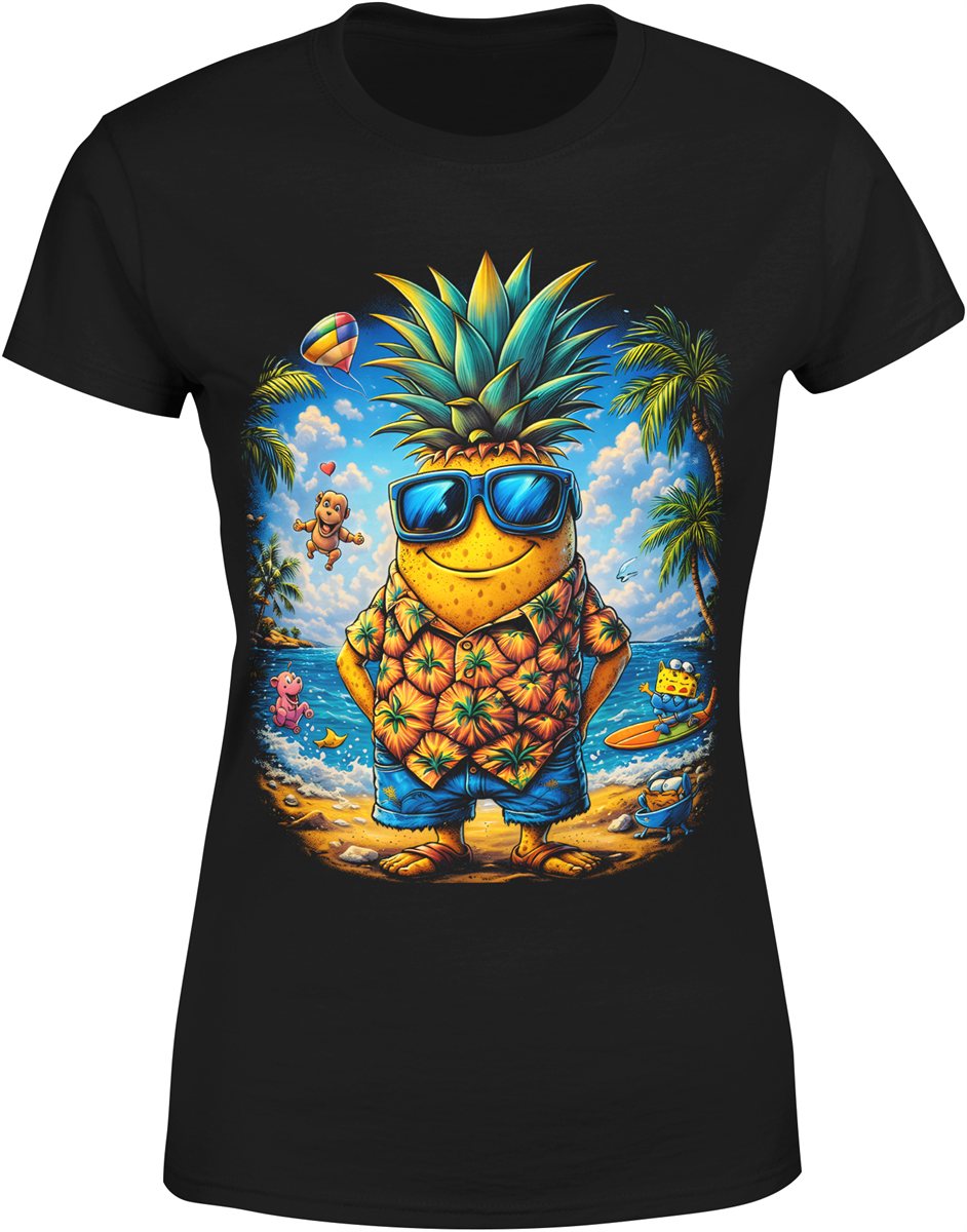 Ananas wakacje plaża lato tropiki śmieszny owoc hawaje chill surfing humor styl Damska koszulka