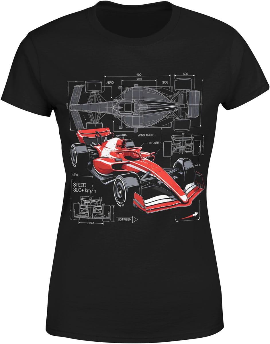 Bolid wyścigowy projekt techniczny motorsport aerodynamika prędkość tor Damska koszulka
