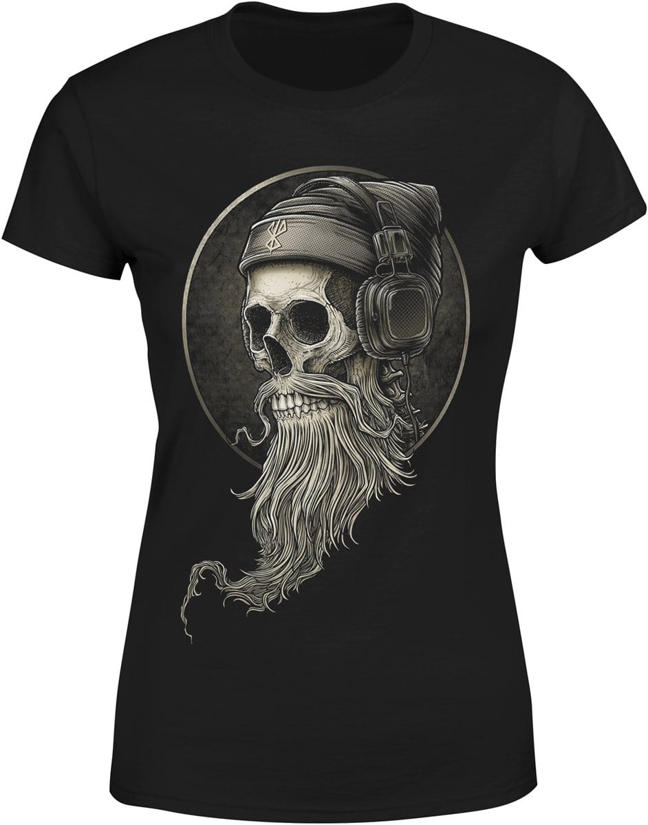 Czaszka z brodą i słuchawkami muzyczny motyw Damska koszulka