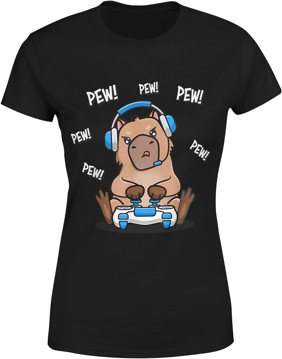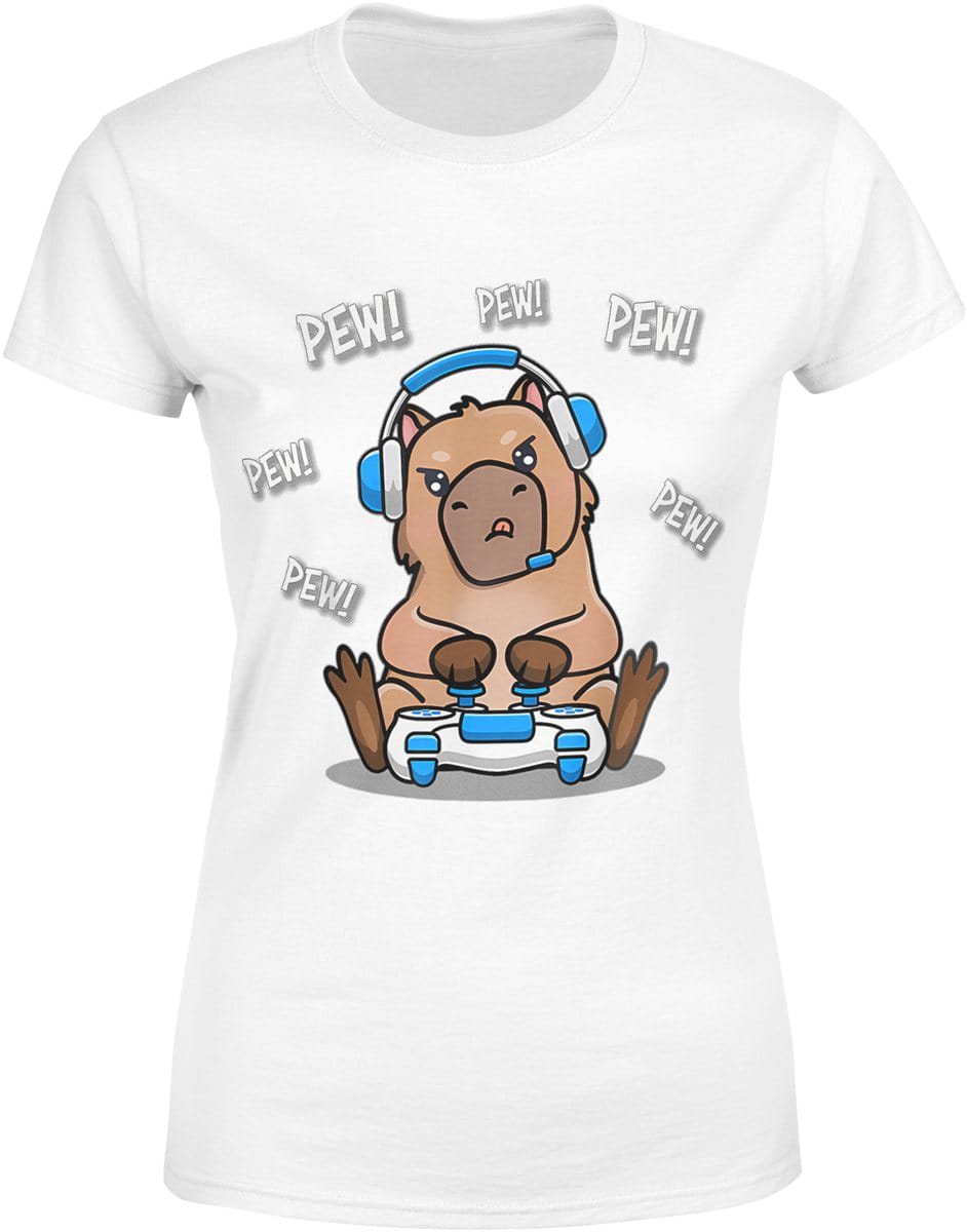 Gracz kapibara gamer Pew Pew z padem Damska koszulka