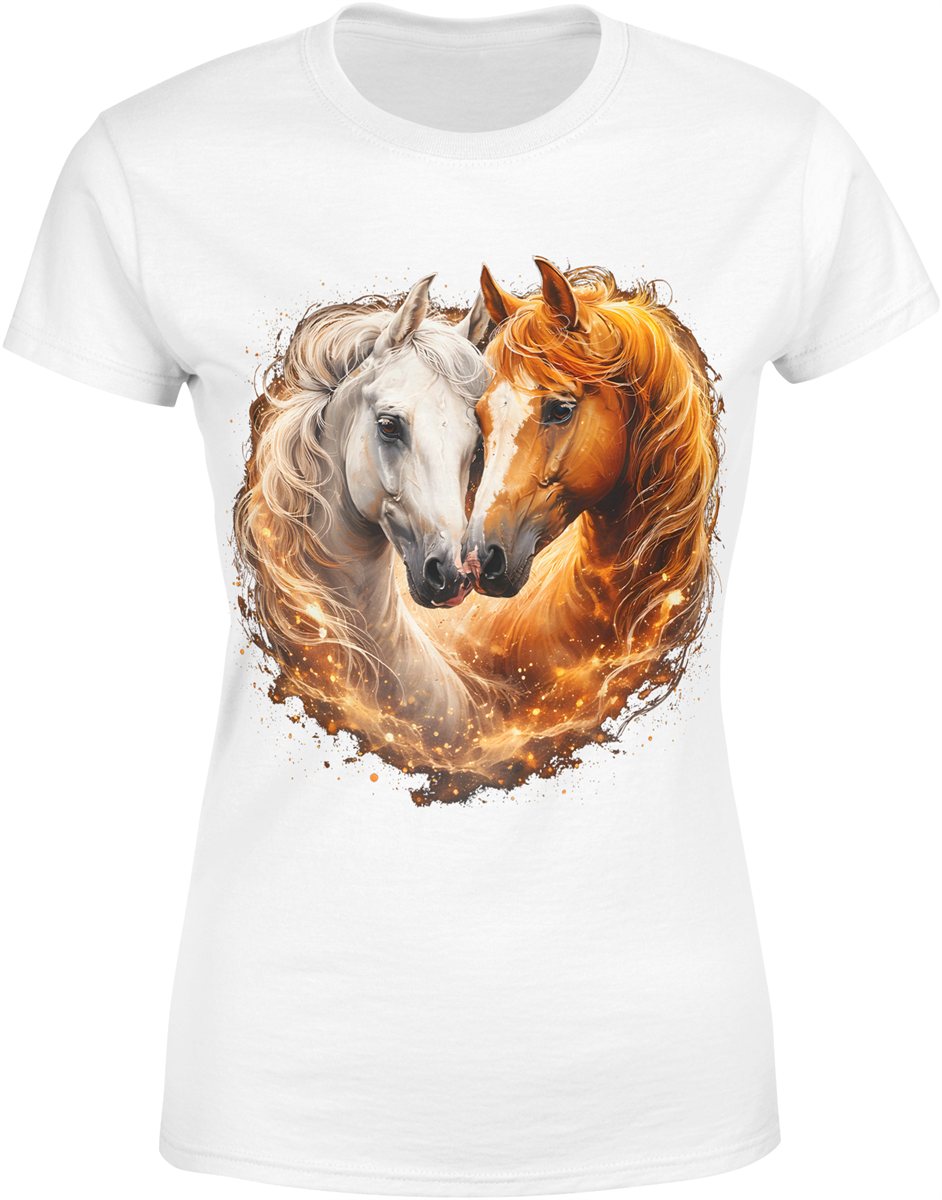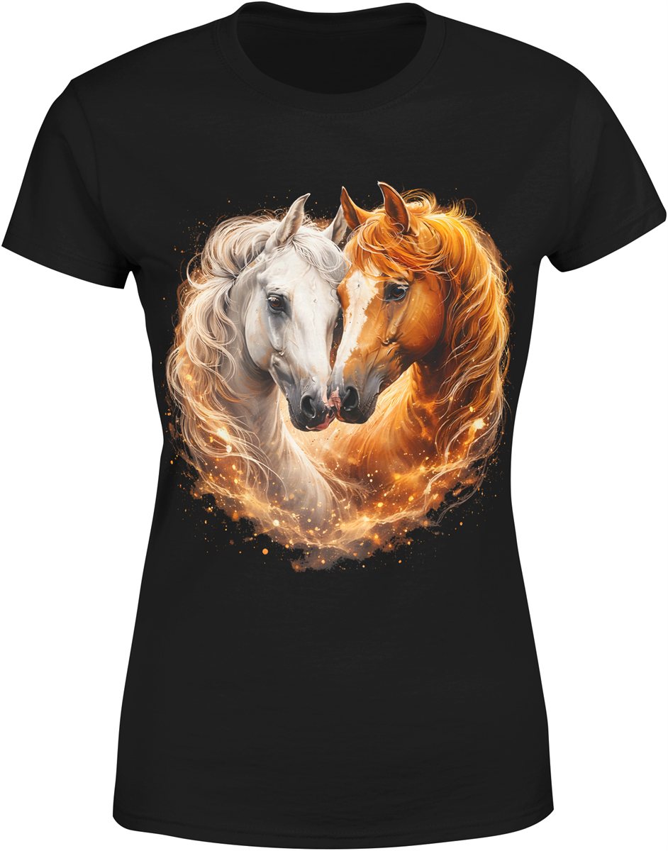 Konie miłość para zwierzęta serce romantyczny ogień magia natura piękne konie Damska koszulka