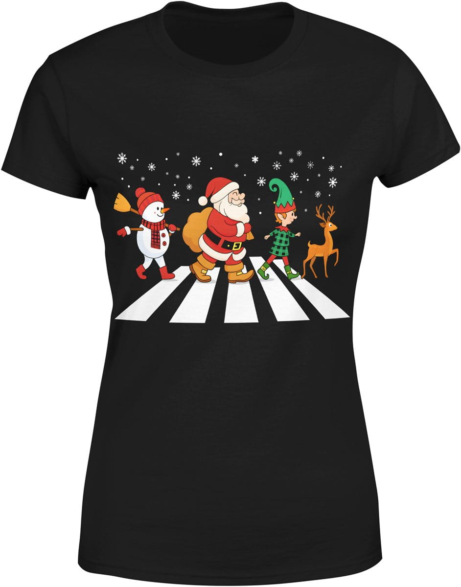 Mikołaj na przejściu – świąteczna parodia z elfem, reniferem i bałwanem Damska koszulka