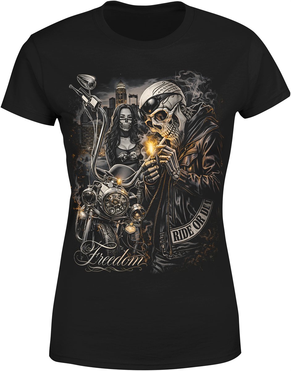 Motocykl szkielet biker ride or die wolność droga styl motoryzacyjny chopper klimat noc Damska koszulka