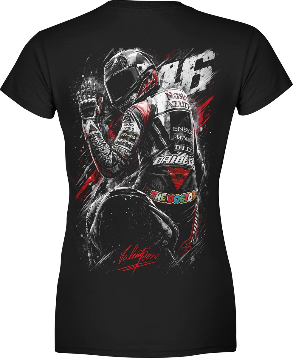 Motocykl wyścigowy rider 46 tor prędkość adrenalina racing sport moto pasja jazdy Damska koszulka