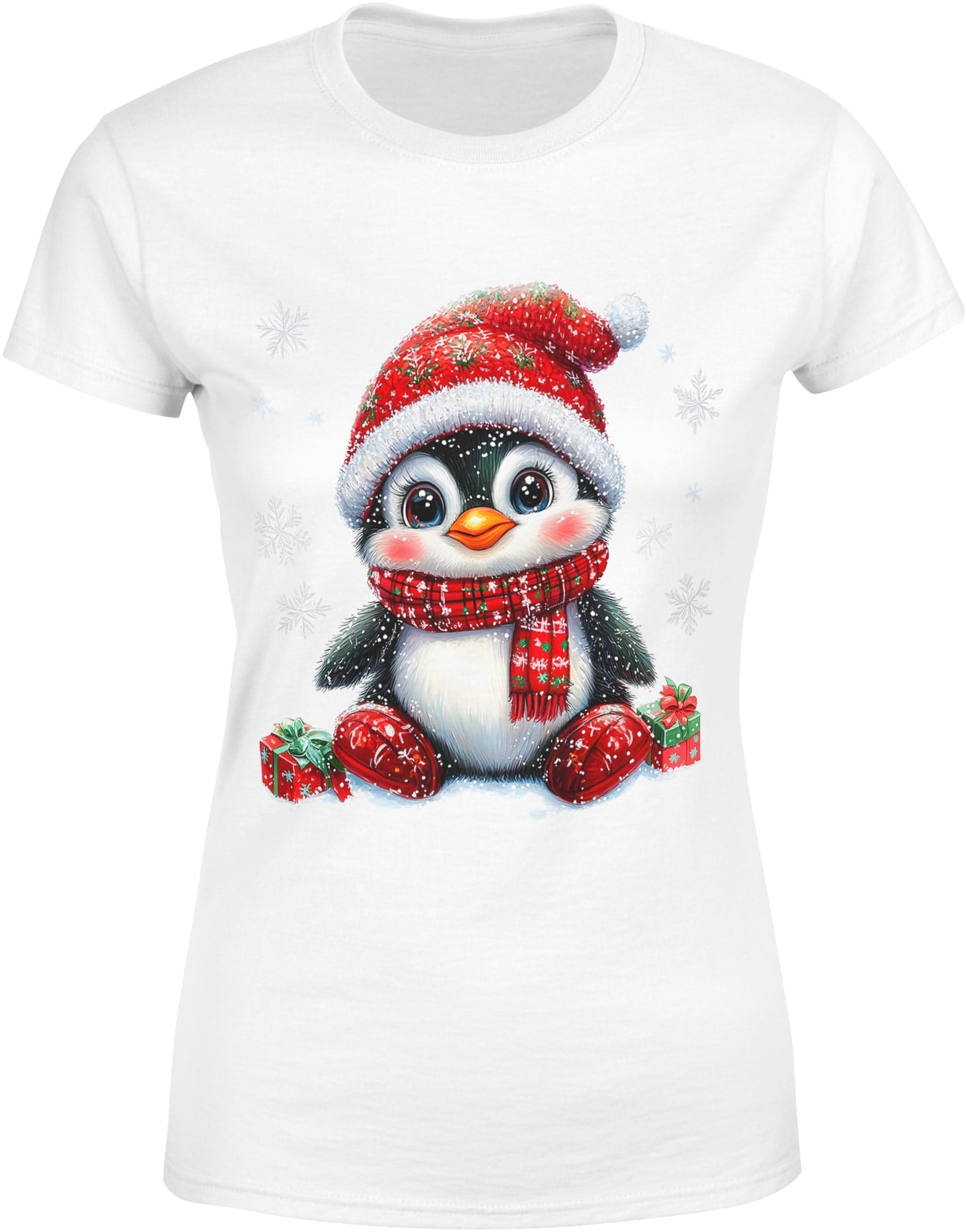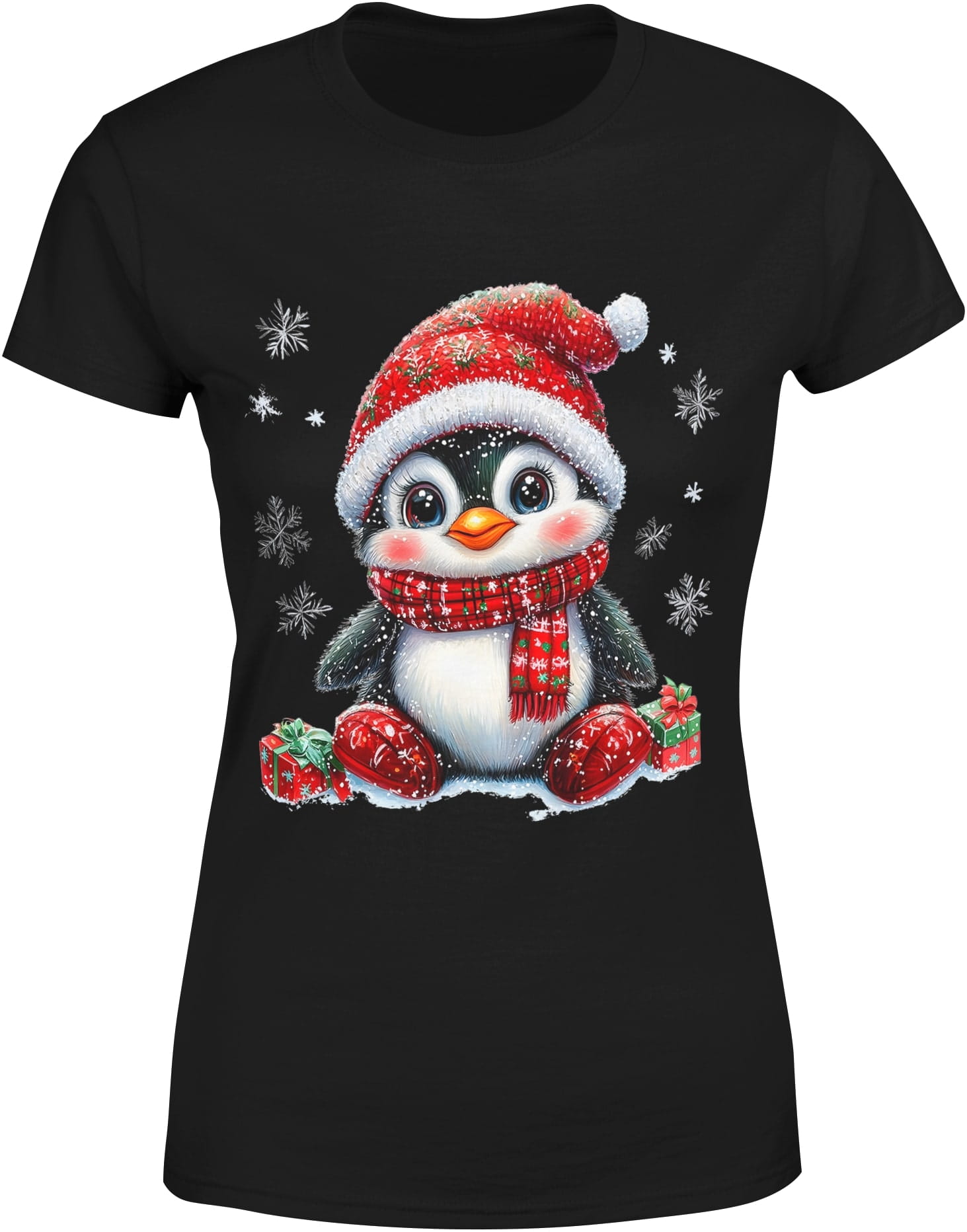 Pingwin z prezentami Damska koszulka