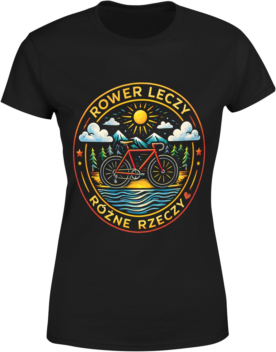 Rower góry natura słońce las jezioro przygoda turystyka outdoor pasja jazda krajobraz Damska koszulka