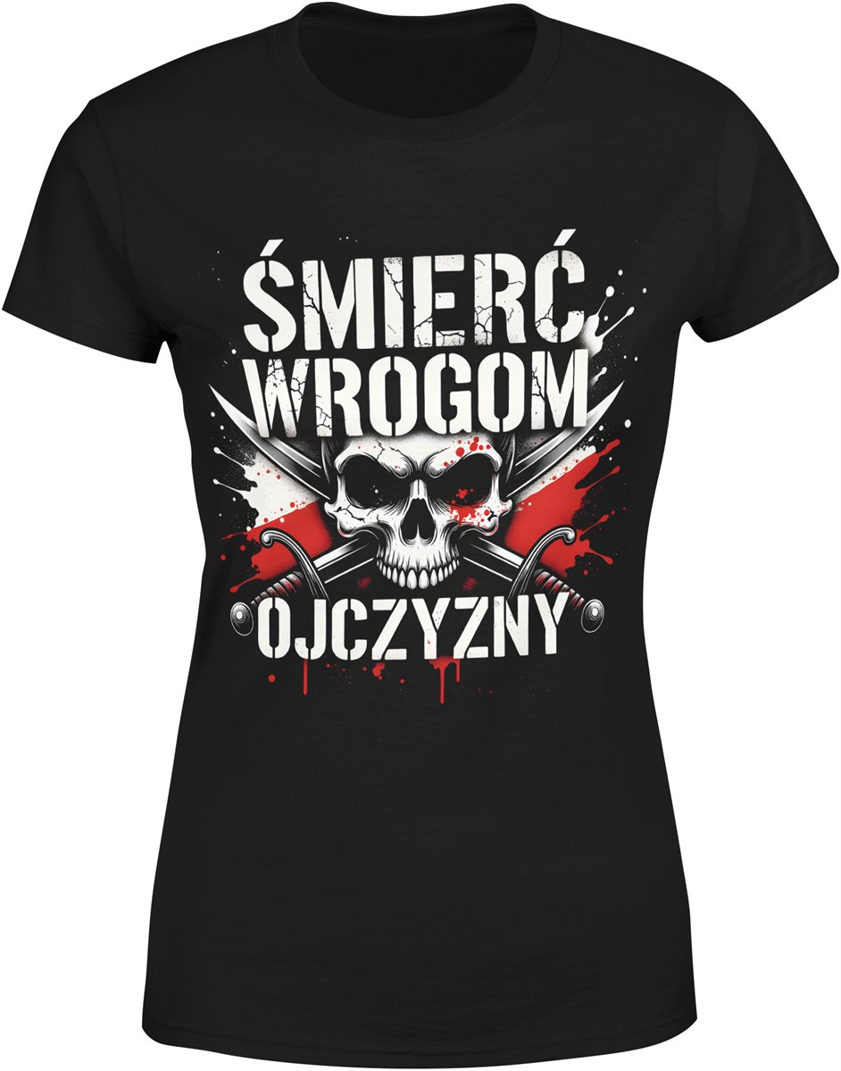 Śmierć Wrogom Ojczyzny czaszka miecze patriotyczny symbol walka honor siła czerwono biała Damska koszulka