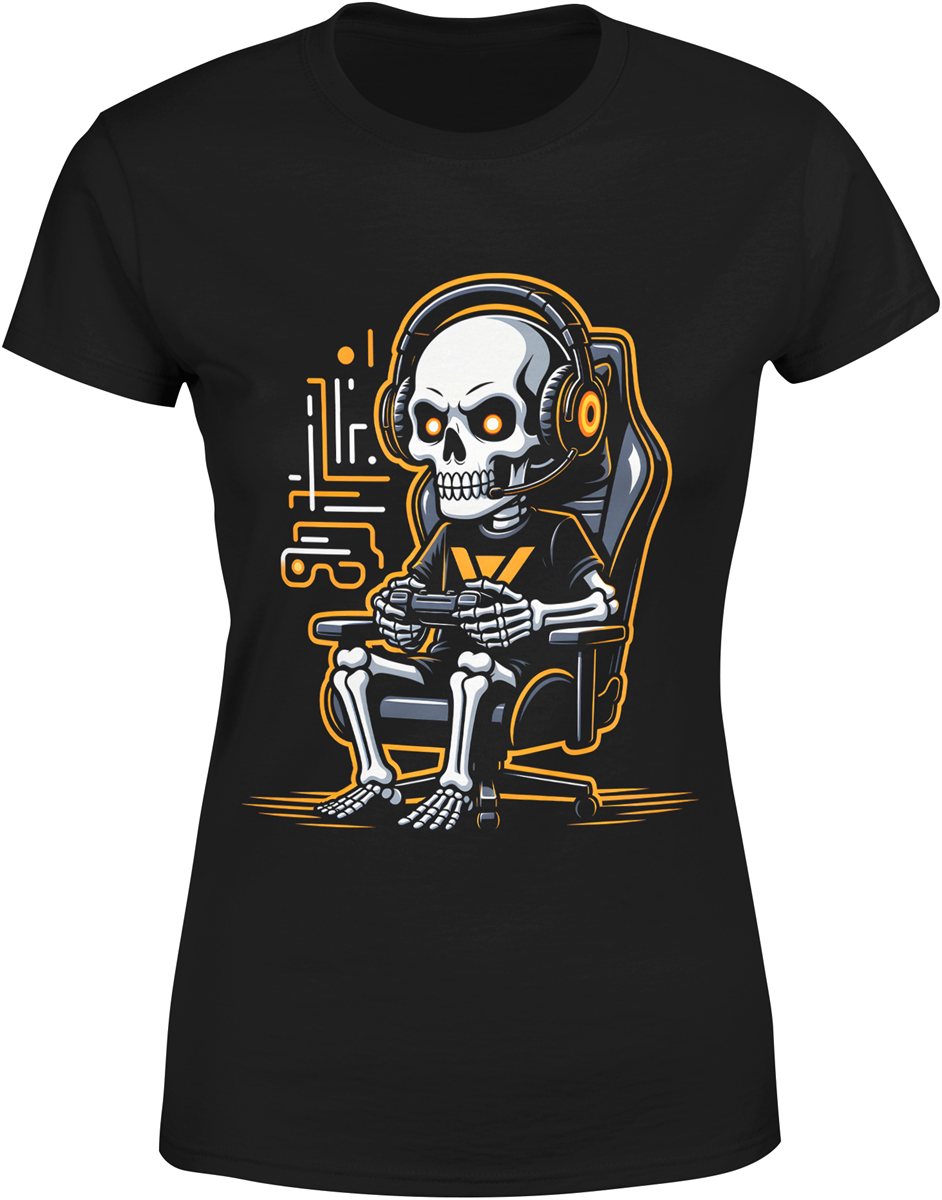 Szkielet gracz gaming headset pad komputer styl gracza e-sport rozrywka nocna pixel vibe Damska koszulka