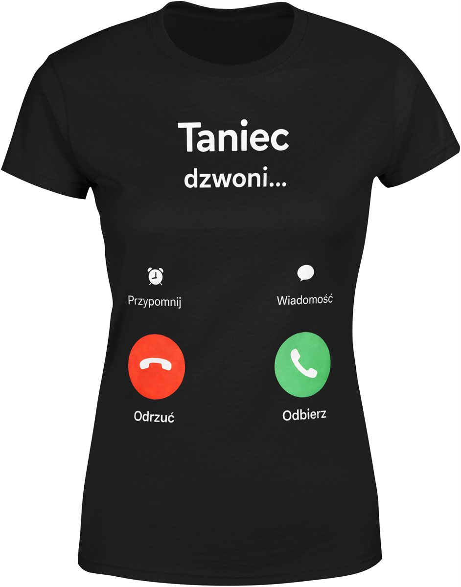 Taniec dzwoni odbierz humor impreza zabawa parkiet klub styl meme telefon motyw Damska koszulka