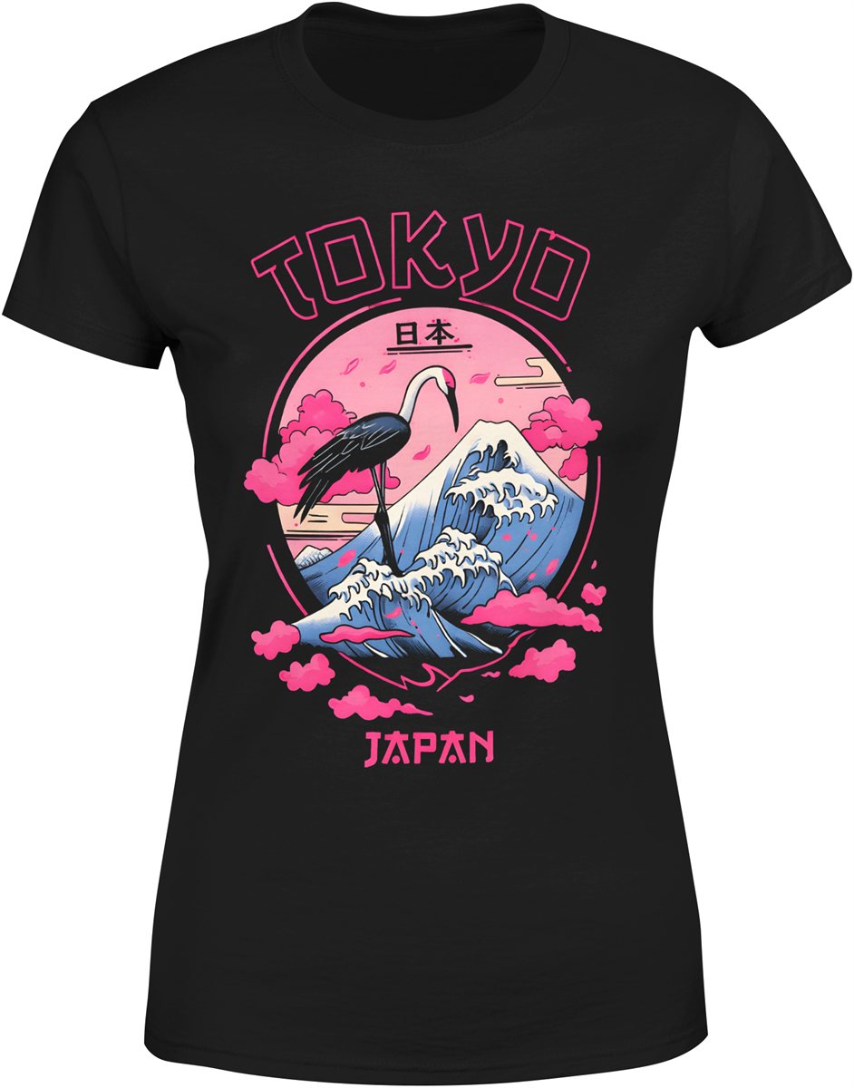 Tokio Japonia góra fala żuraw styl japoński neon klimat anime podróże kultura azjatycka Damska koszulka