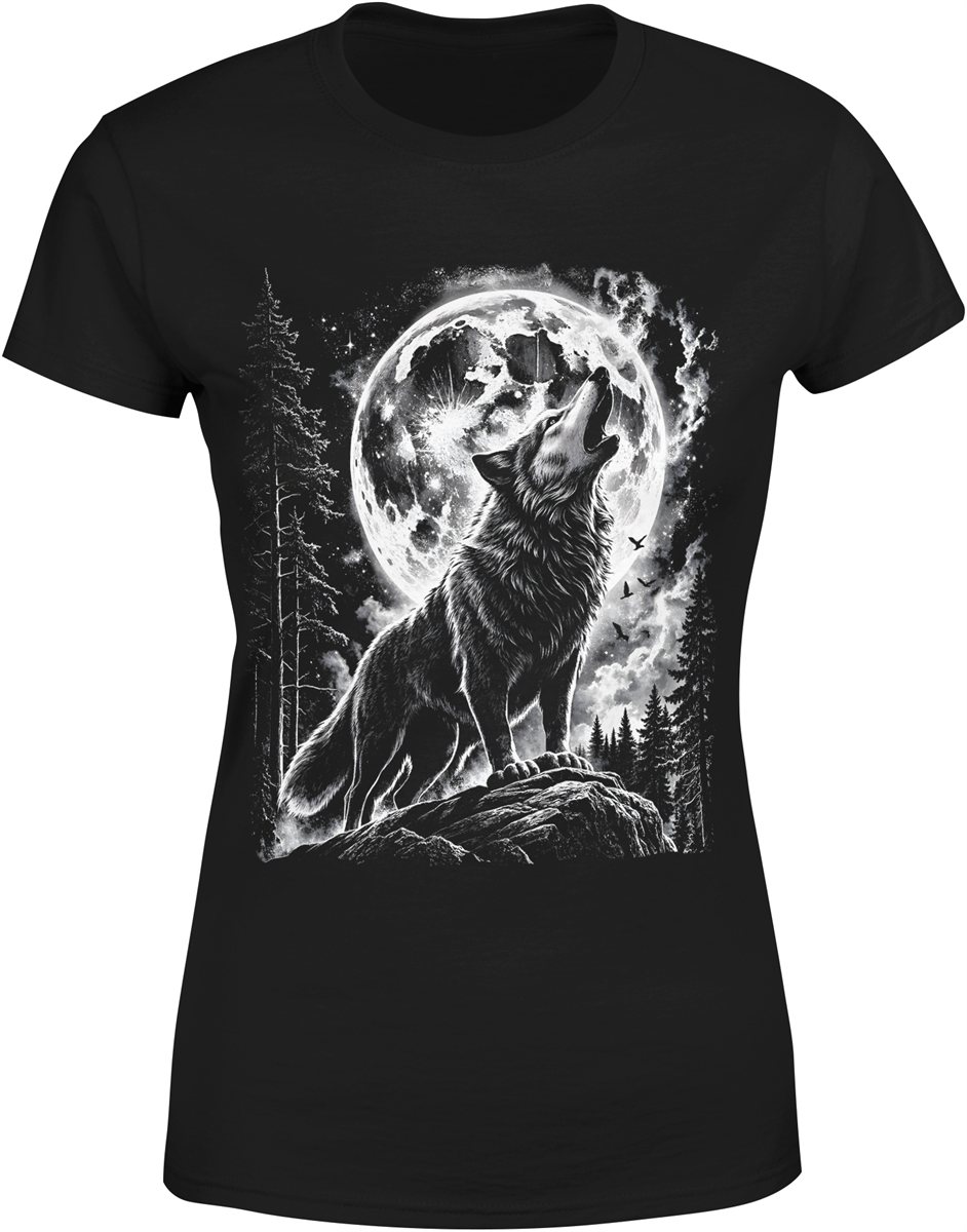 Wilk wyjący do księżyca noc las natura dzikość zwierzę mrok pełnia Damska koszulka