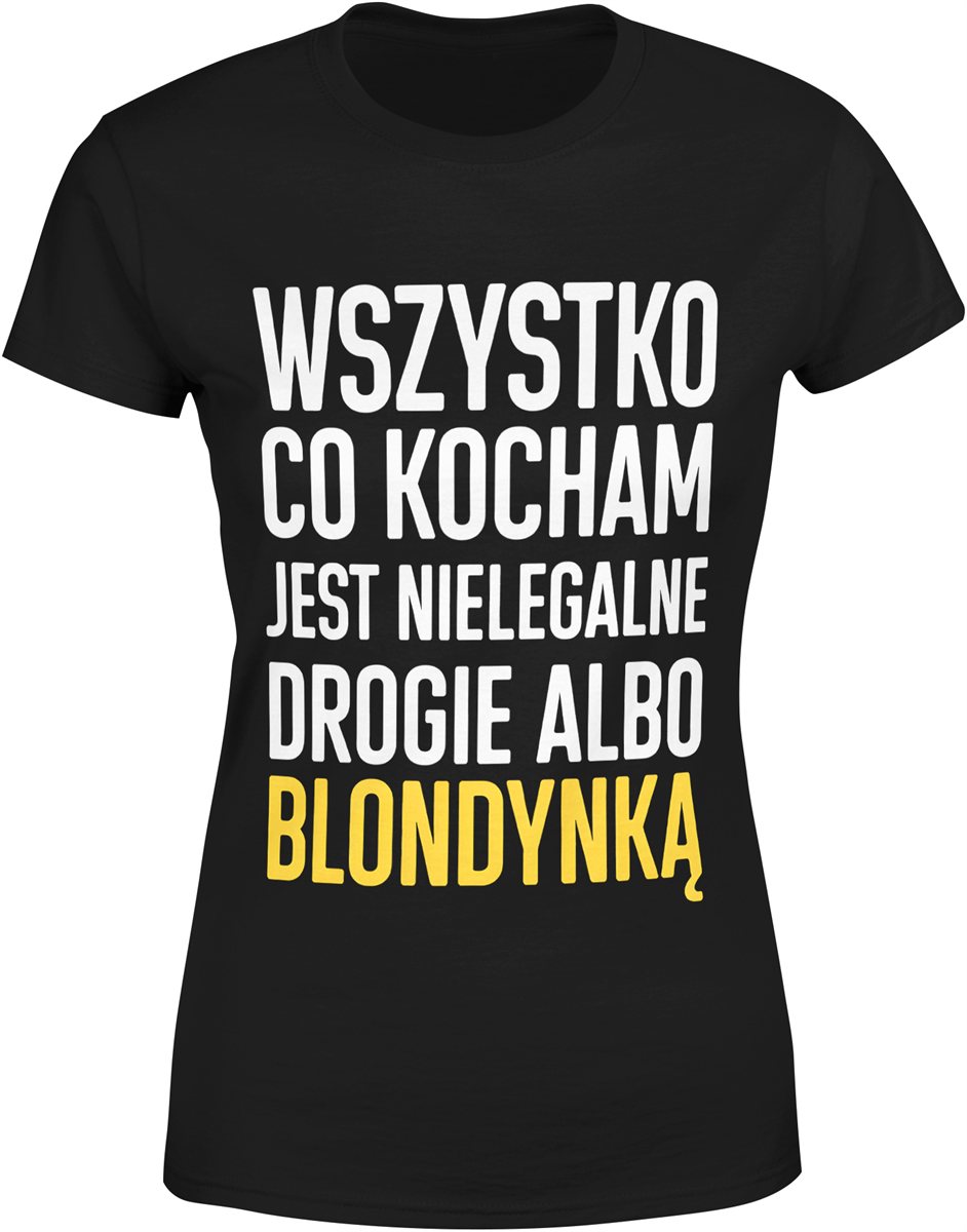 Wszystko co kocham jest nielegalne drogie albo blondynka humor tekst impreza relacja ironia Damska koszulka