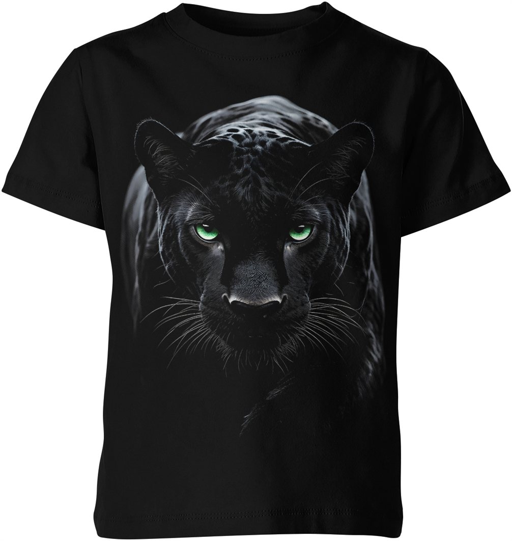 Czarna pantera zielone oczy dzikie zwierzę drapieżnik natura lew kot Dziecięca koszulka
