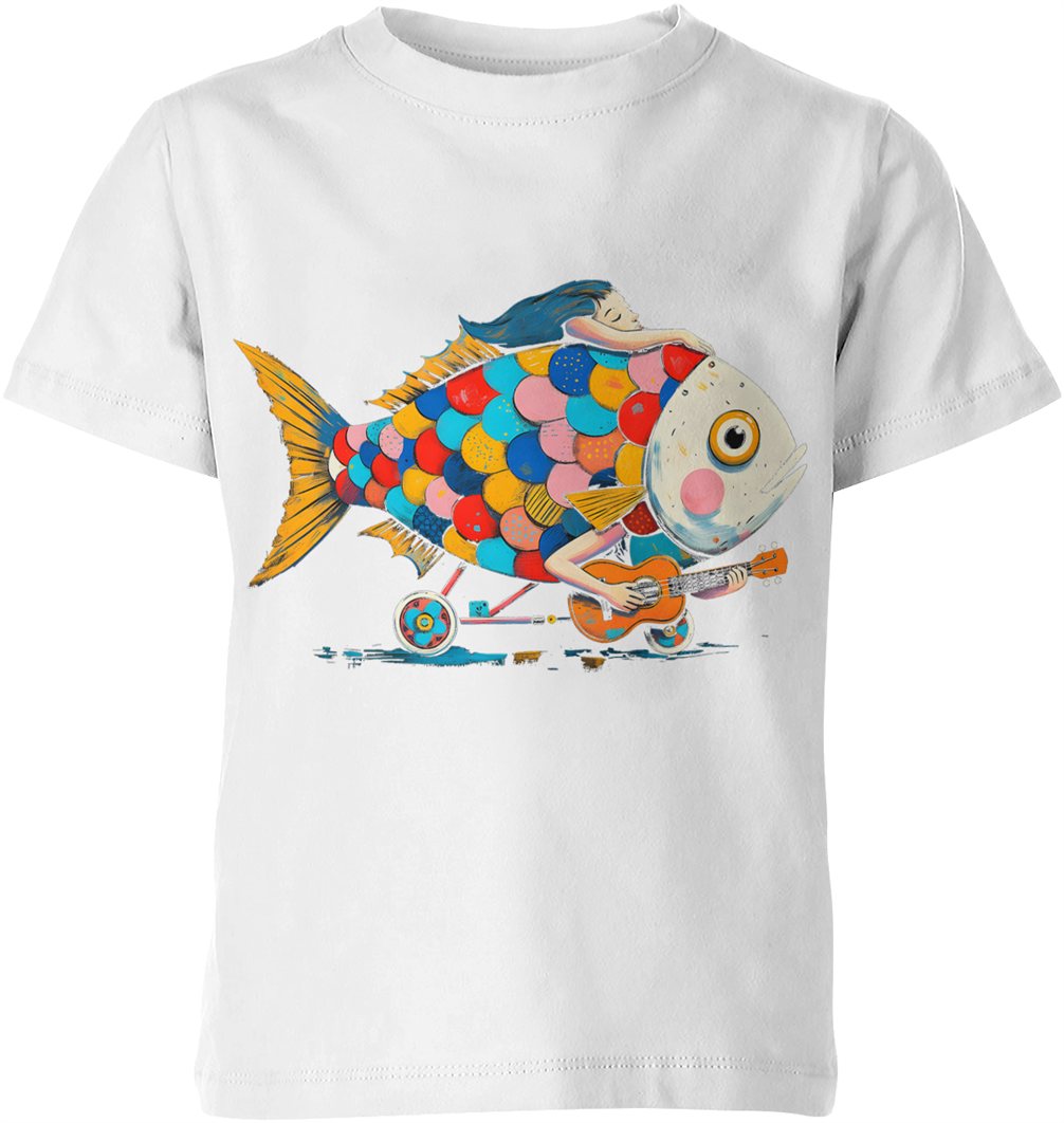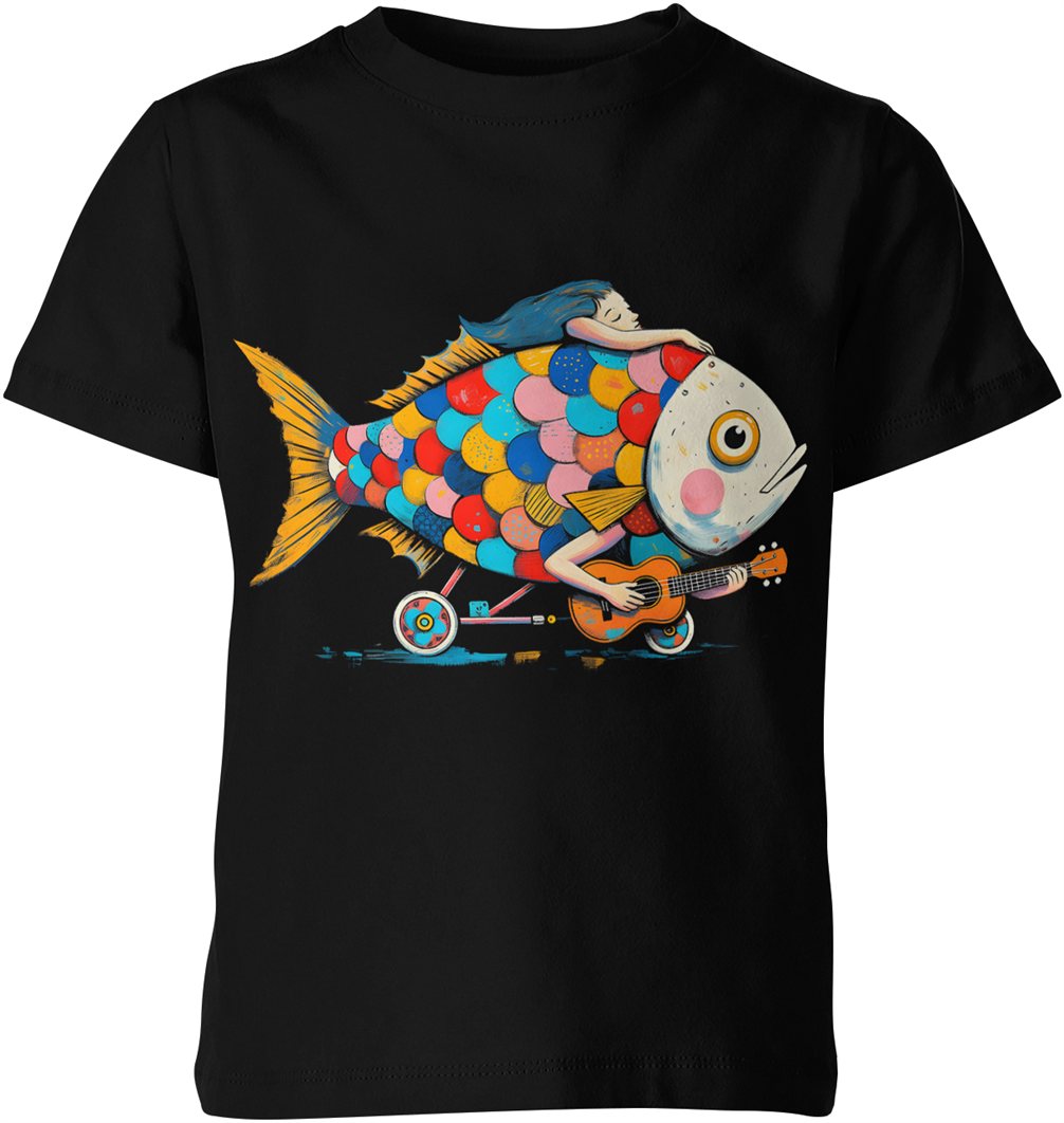 Kolorowa ryba fantazyjna gitara muzyka sztuka kreatywna ilustracja akwarela abstrakcja Dziecięca koszulka