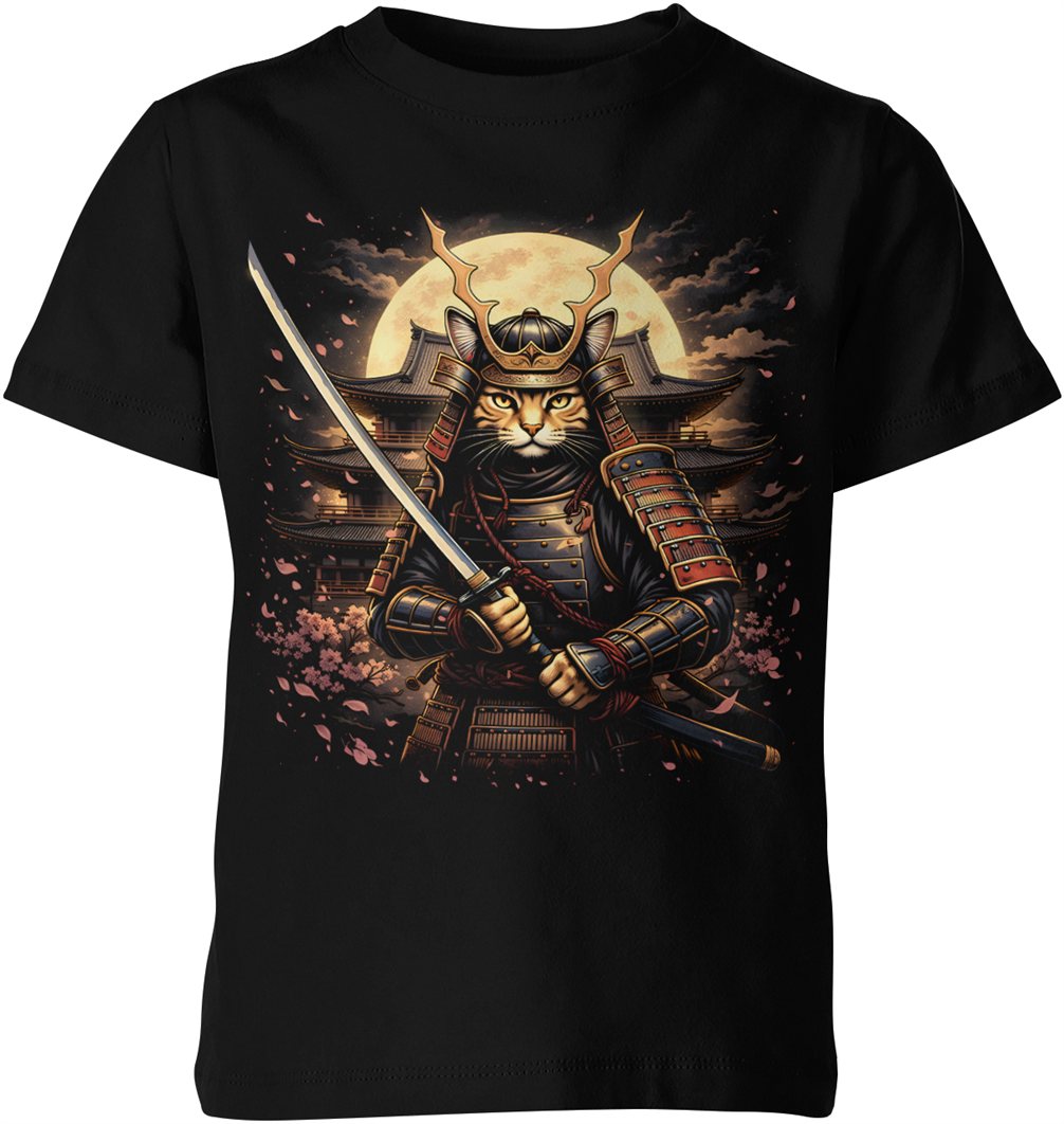Kot samuraj katana Japonia wojownik honor styl orientalny sztuka walki klimat retro Dziecięca koszulka