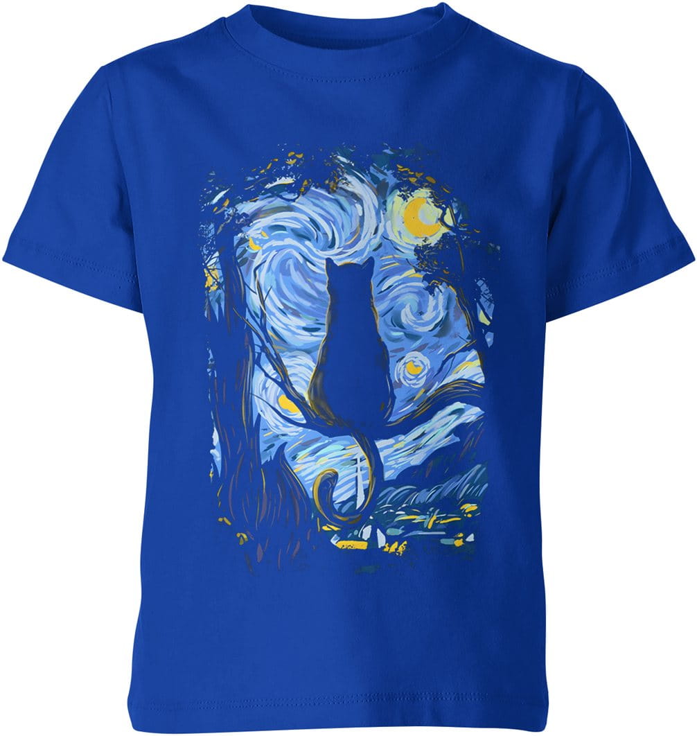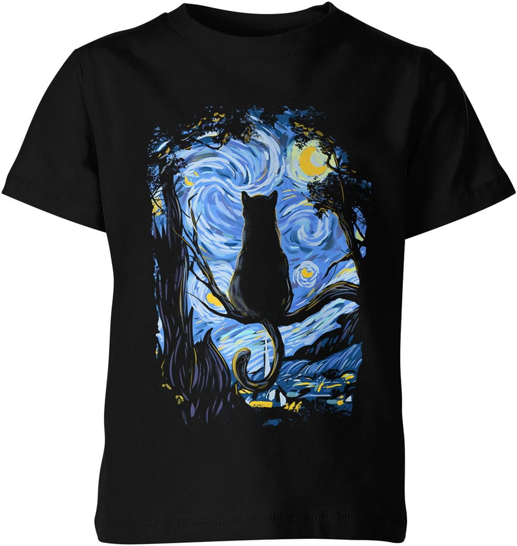 Kot w gwiaździstą noc styl van gogha artystyczny obraz Dziecięca koszulka