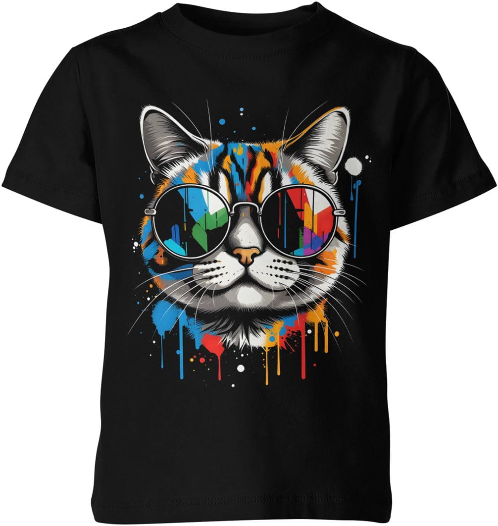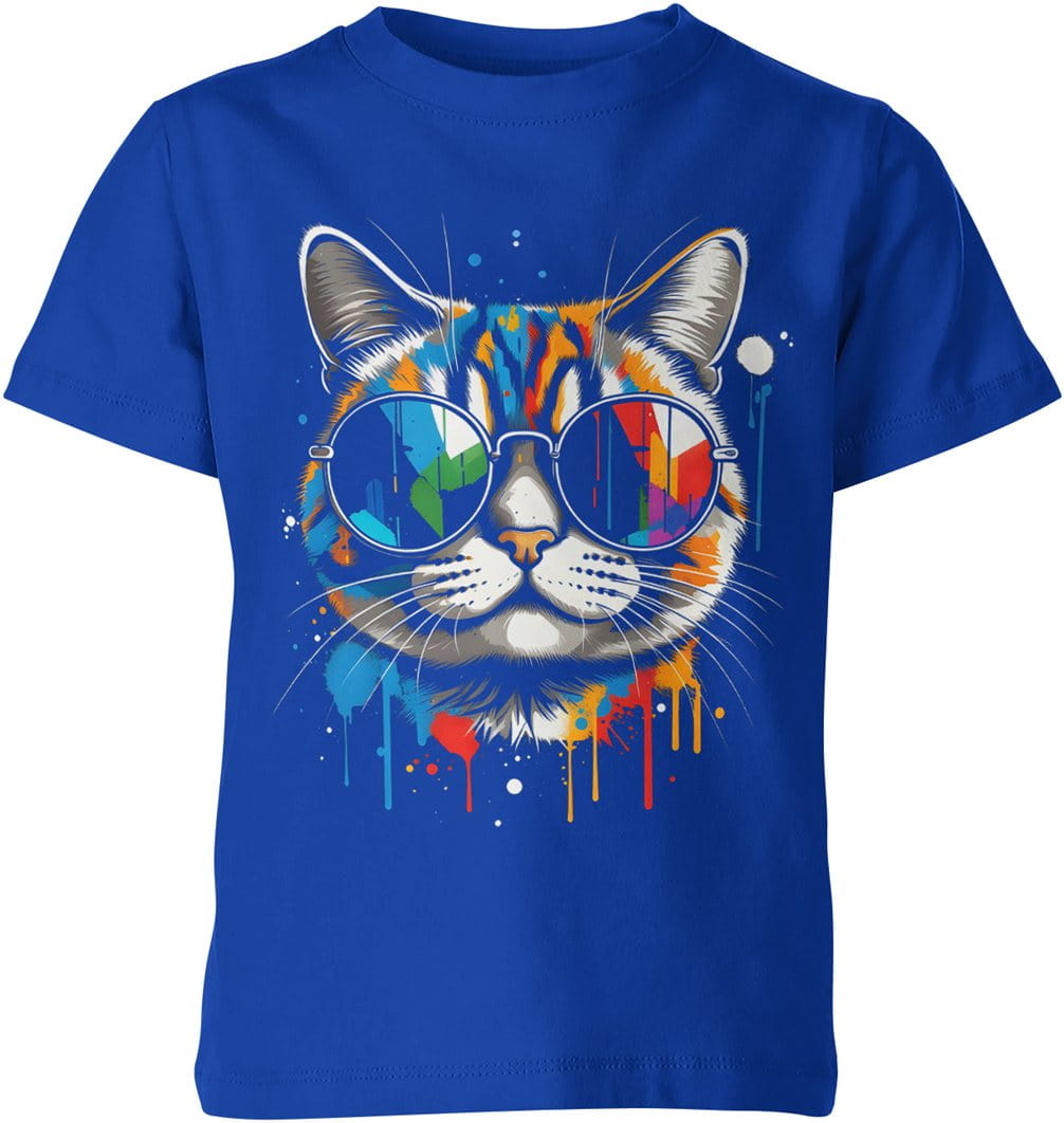 Kot w okularach art kolorowy street styl nowoczesna grafika zwierzęca Dziecięca koszulka