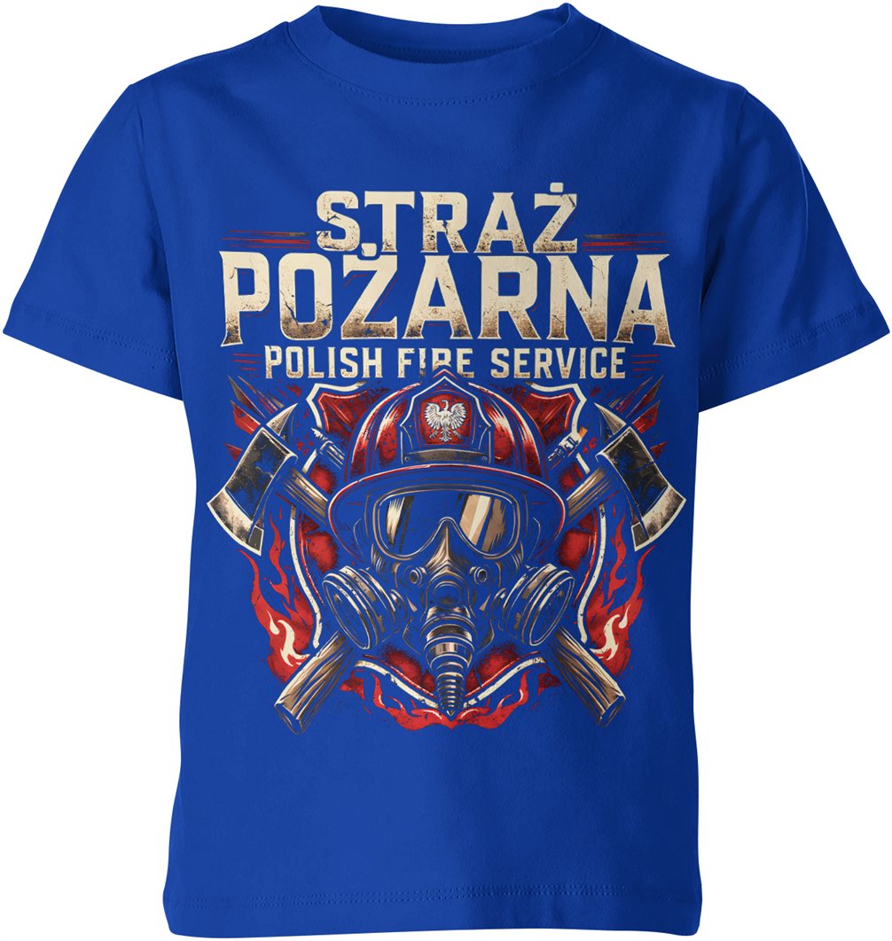 Straż Pożarna Polish Fire Service hełm maska topory ogień ratownik akcja bohater klimat Dziecięca koszulka