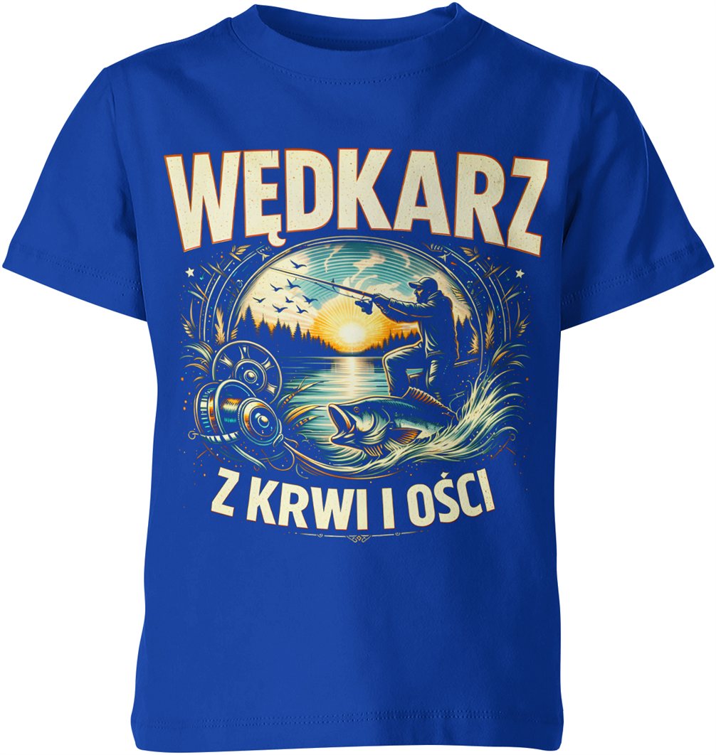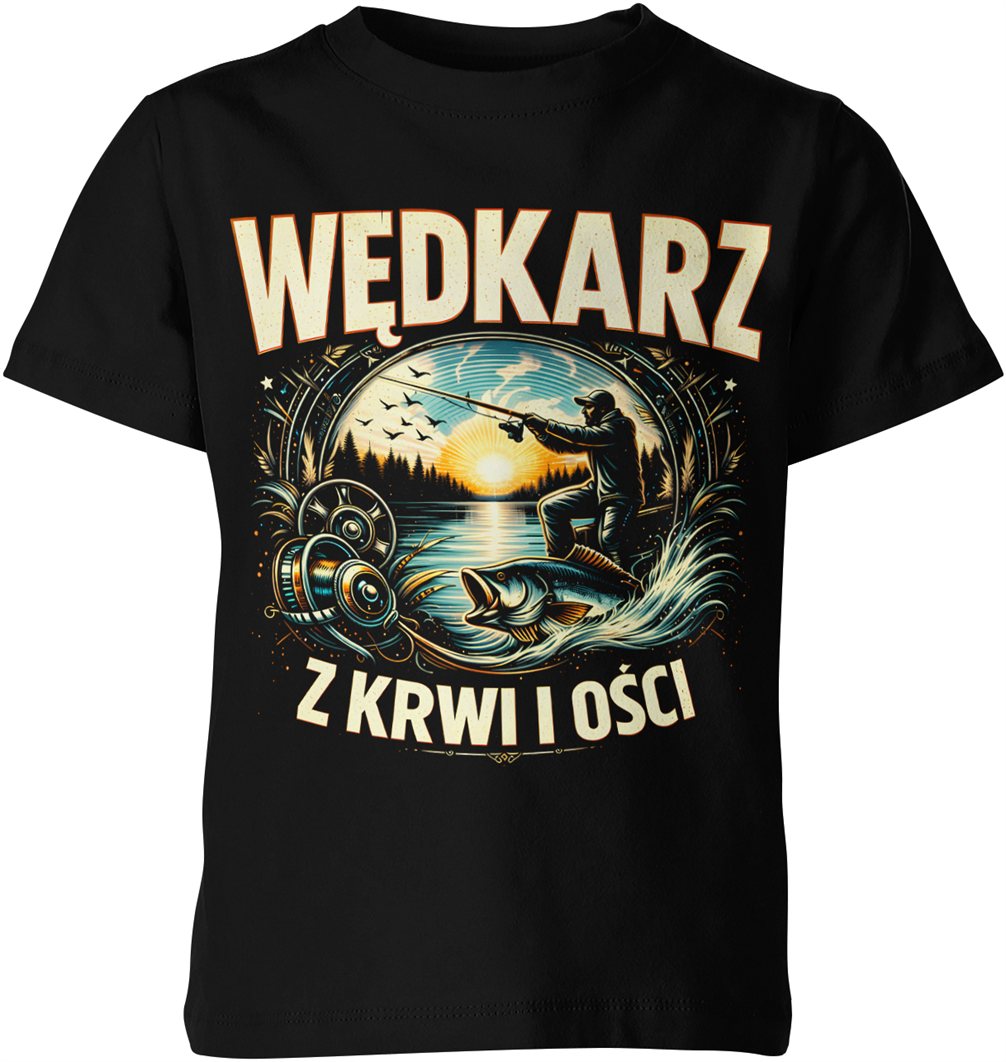 Wędkarz z krwi i kości jezioro ryba zachód słońca pasja hobby natura relaks Dziecięca koszulka