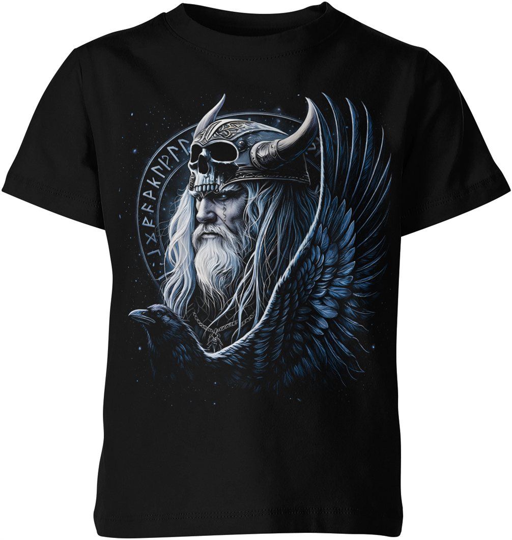 Wiking wojownik nordycki czaszka kruk runy mitologia nordic dark fantasy Dziecięca koszulka