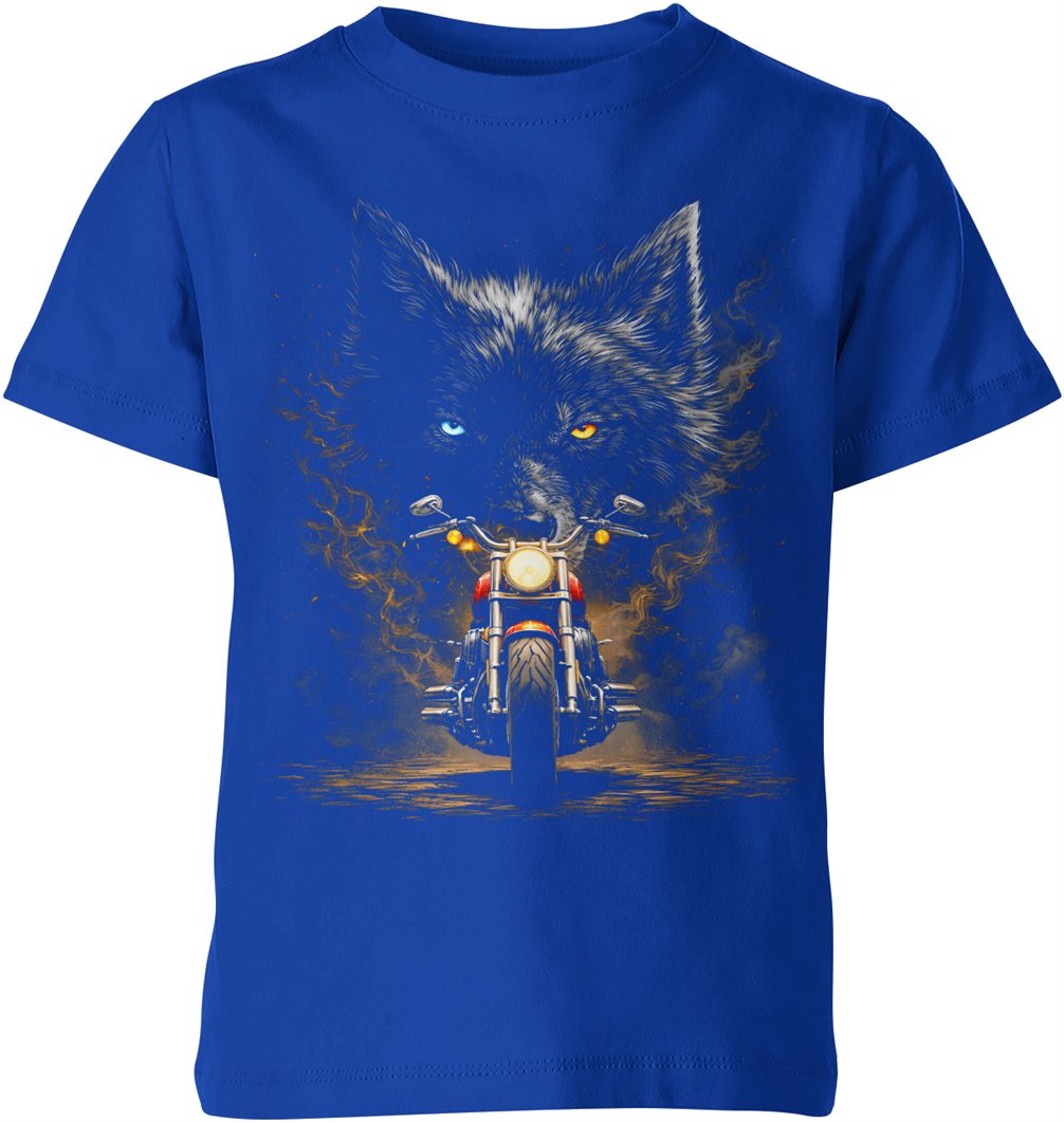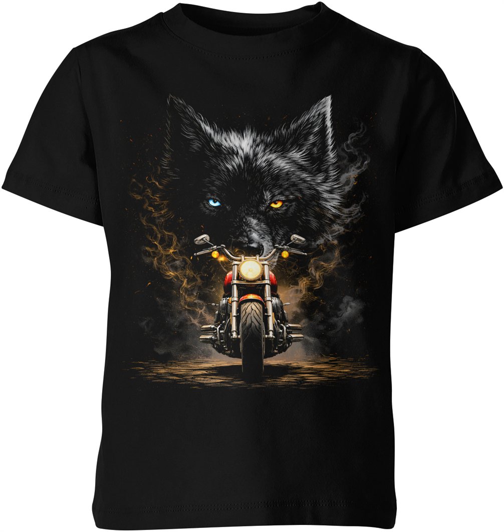 Wilk i motocykl ogień jazda wolność adrenalina biker styl droga pasja motory Dziecięca koszulka