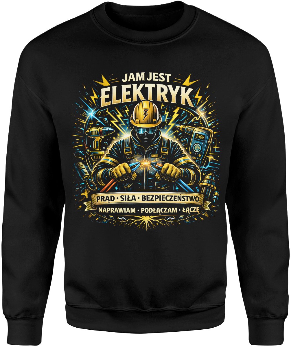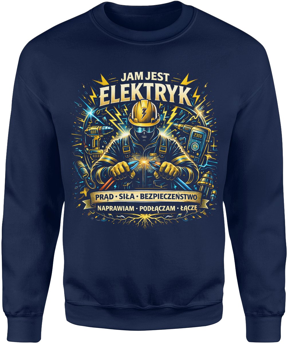 Jestem elektryk prąd napięcie instalacje elektryczne narzędzia fachowiec energia zawód Męska bluza