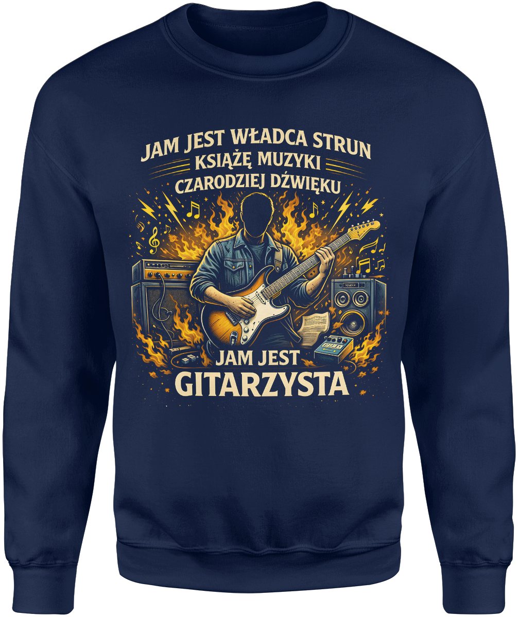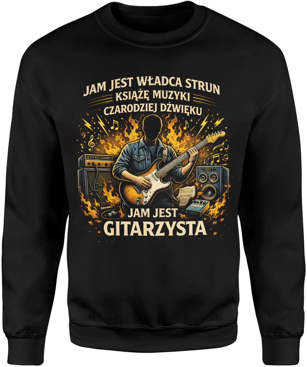 Jestem gitarzystą władca strun elektryczna gitara ogień scena koncert pasja Męska bluza