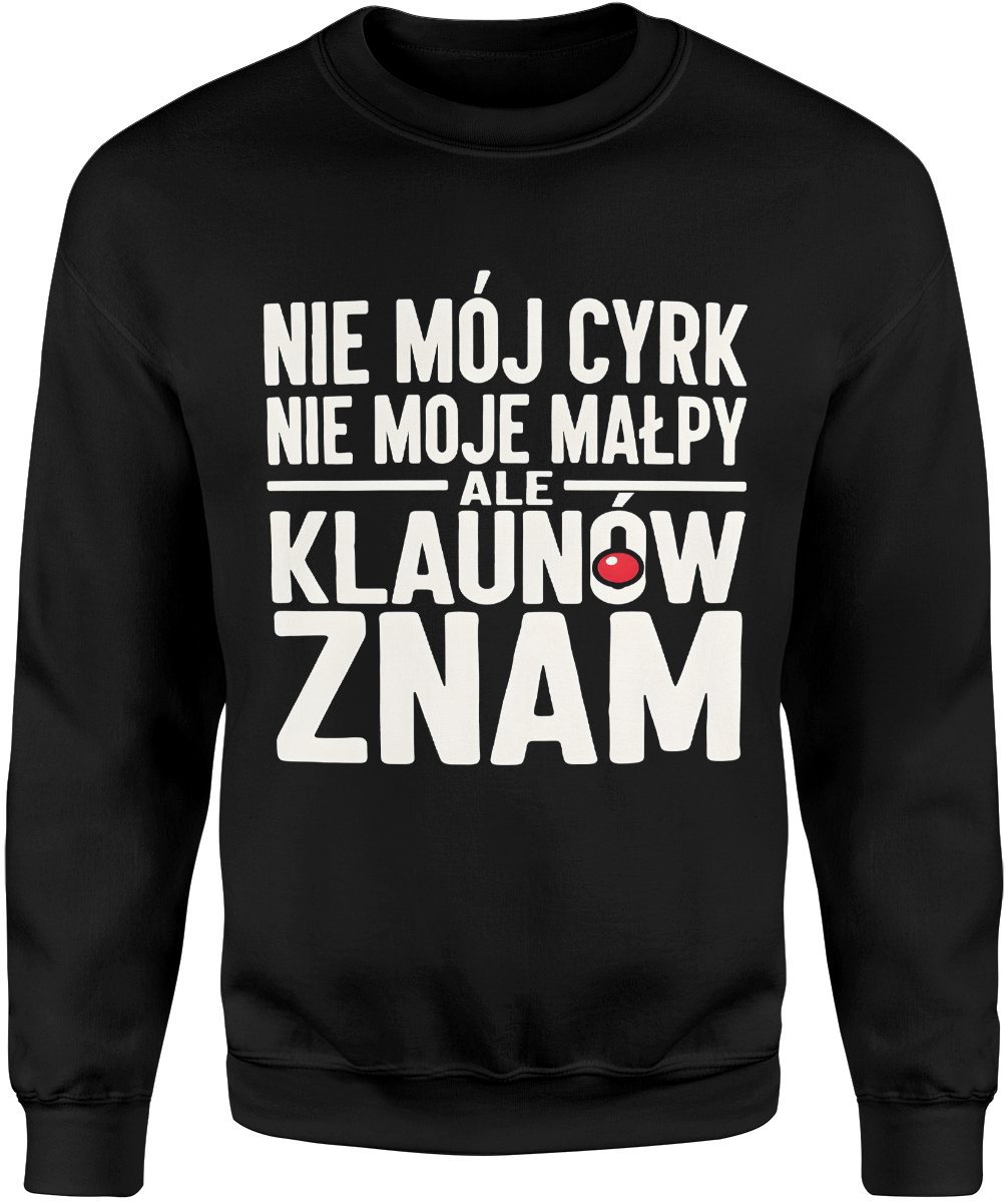 Nie mój cyrk nie moje małpy ale klaunów znam tekst humor dystans ironia cytat życie Męska bluza