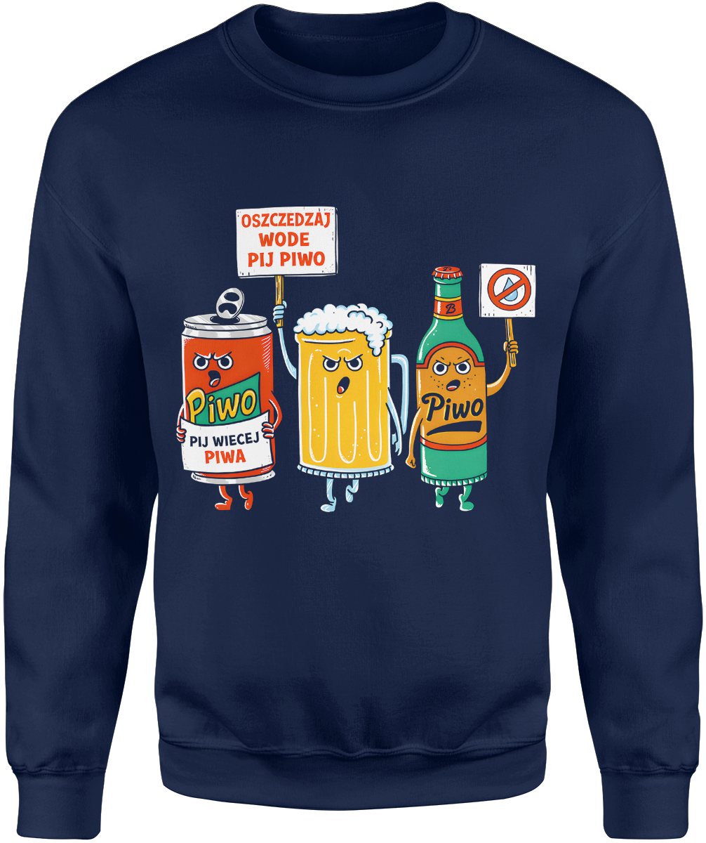 Piwo humor postacie kufel butelka puszka zabawny motyw impreza alkohol hasło oszczędzaj wodę Męska bluza